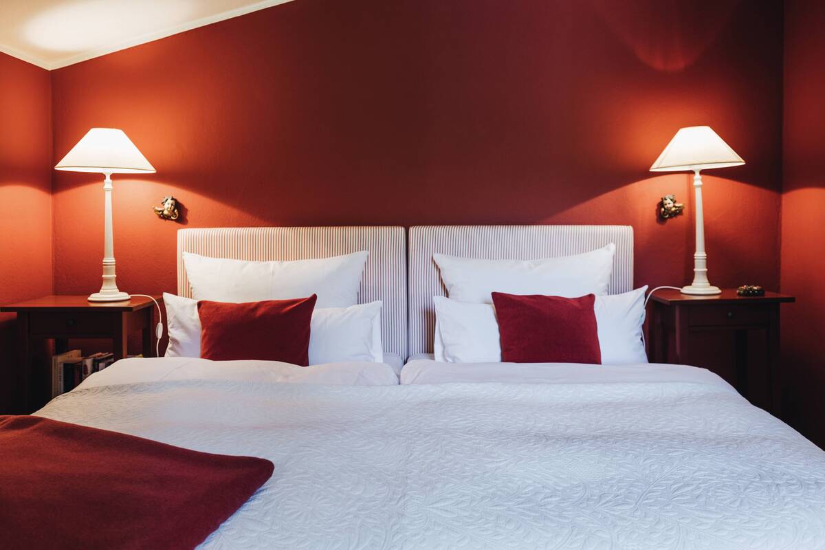 - Room 1 (red): master double with en-suite shower, bath and wc