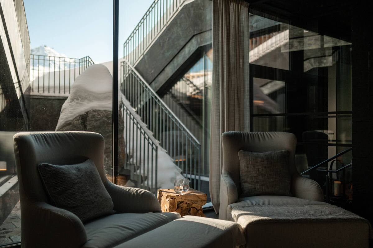The indoor spa has a swimming pool with stunning alpine views, sauna, steam room, gym, relaxation area and treatment room (for massages and beauty therapy sessions).