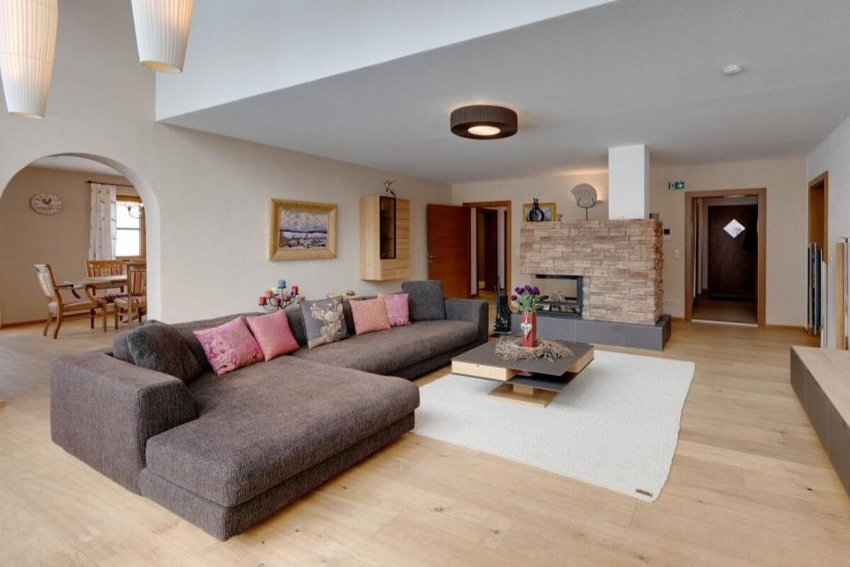 Chalet Anna Maria offers spacious living areas for up to 14 guests. It features en-suite bedrooms, a wellness area, and easy access to St Anton's slopes and lifts.