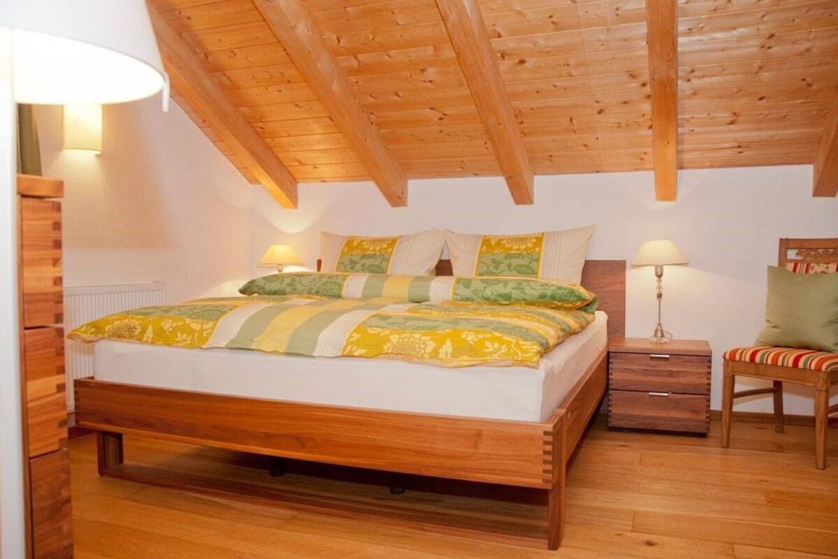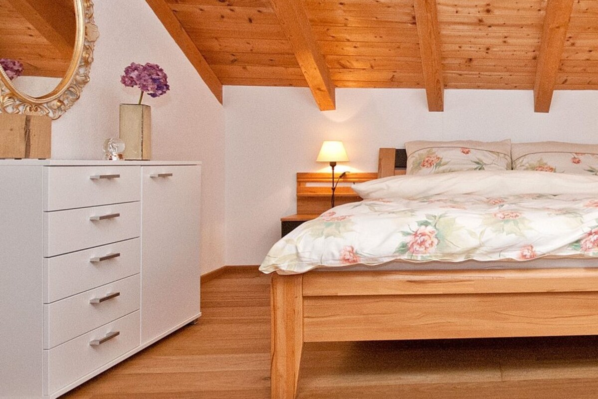 On the ground floor, guests can relax in a large, cosy living room with a fireplace, comfortable seating, and a flat-screen TV. The adjacent dining area is where chalet hosts serve a three-course dinner, prepared in the open kitchen. This floor also houses the master bedroom, a double with an ensuite bathroom featuring a jacuzzi bath, which can be adapted to sleep four if desired.