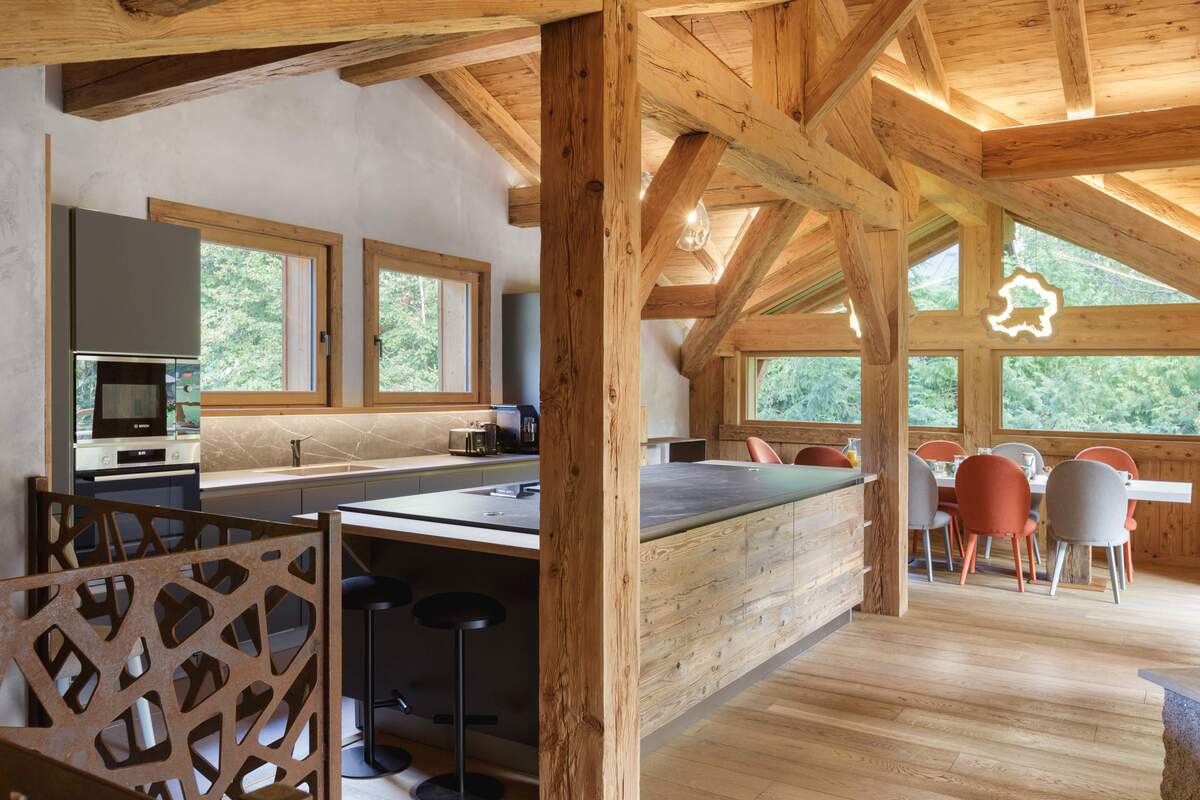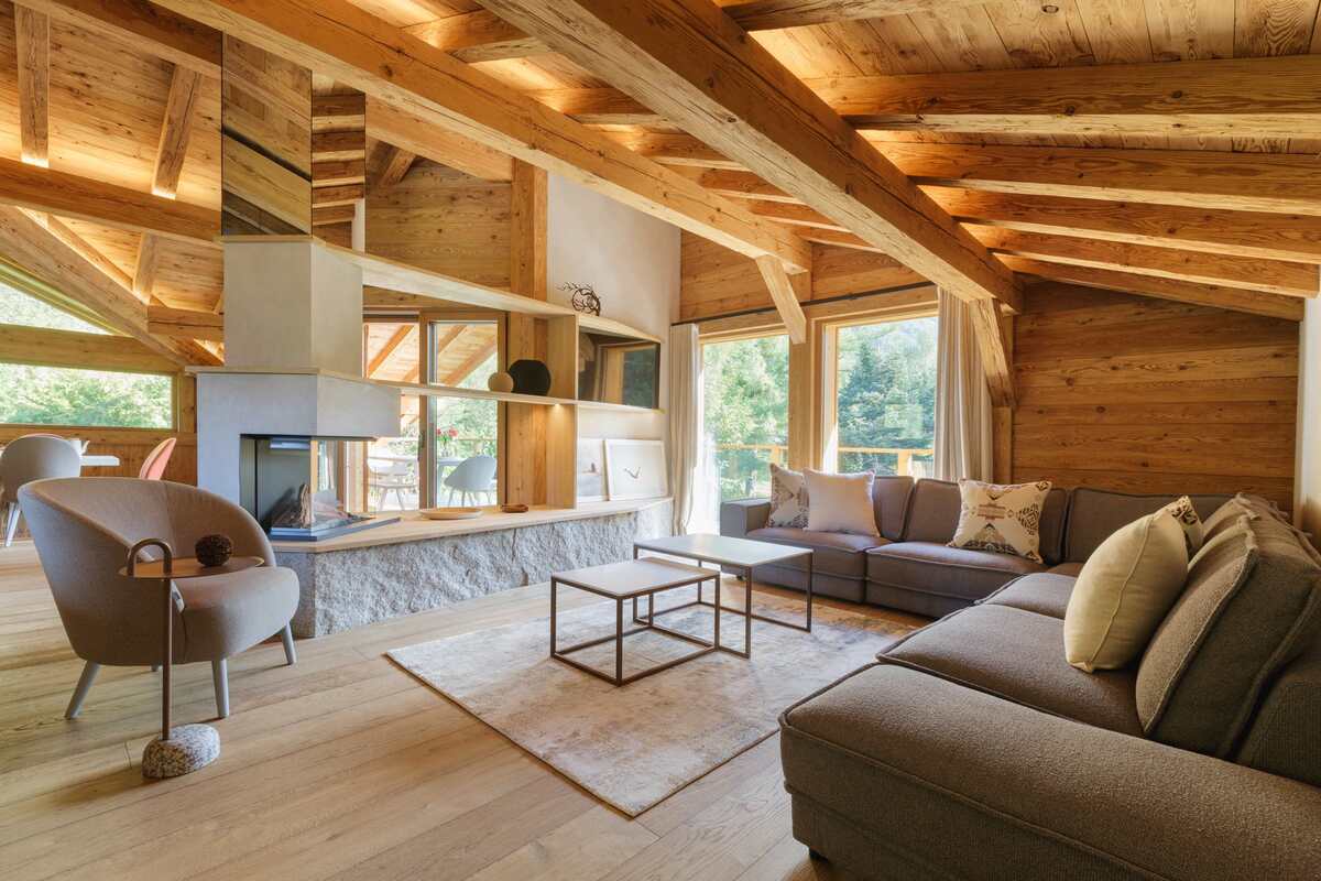 Chalet Blaitiere in Chamonix is a bright and airy modern property offering 218 square metres of internal space. It has a lovely large upper floor sitting room which is open plan - the decor is a delightful blend of traditional and contemporary styles bringing the best of both.