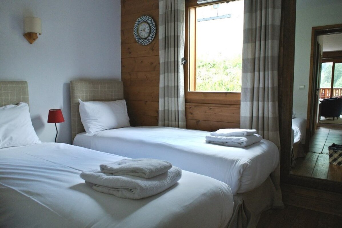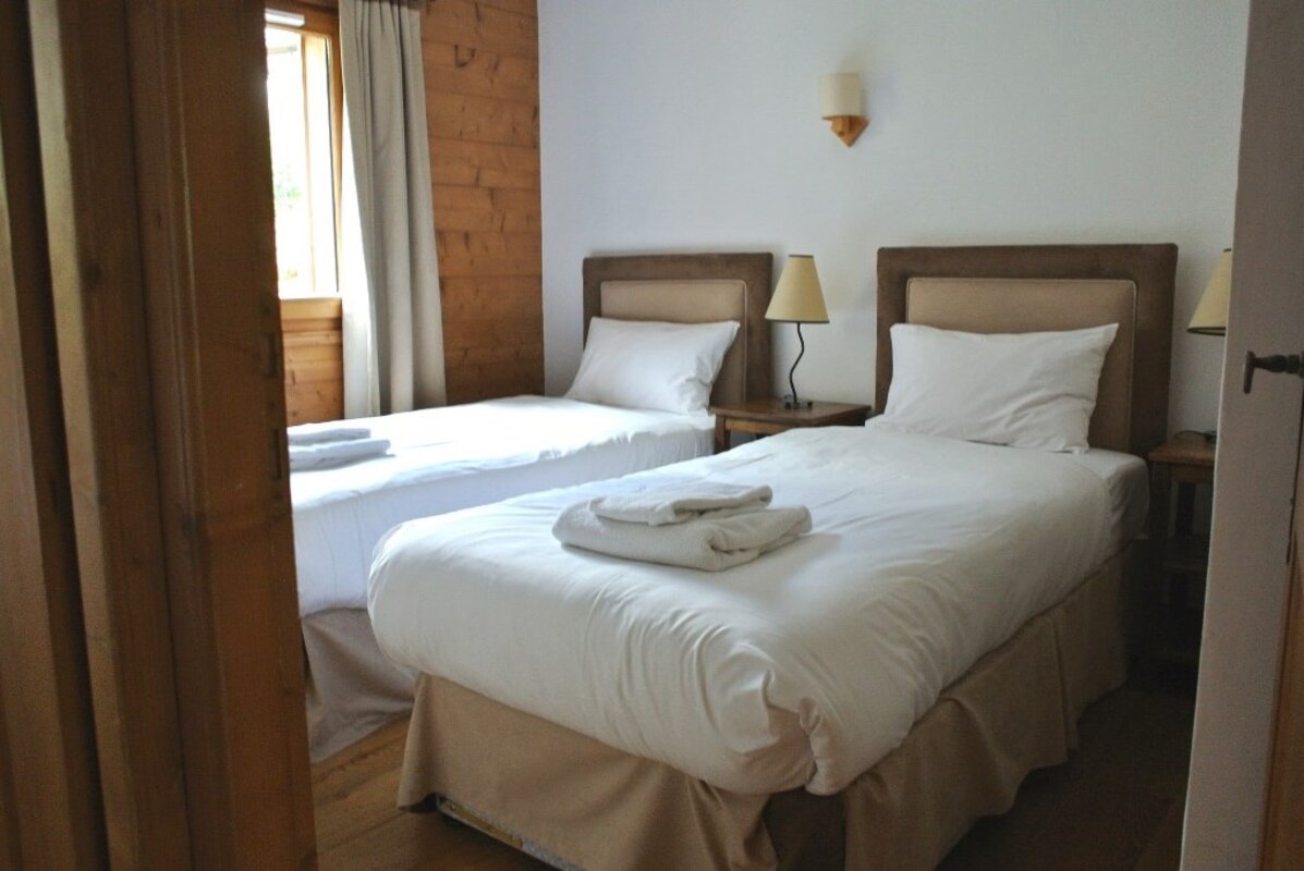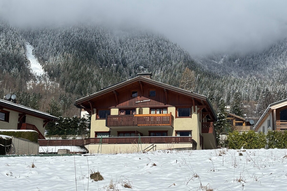Le Clos des Etoiles in Chamonix is a small collection of three chalets divided into 4 apartments each. Situated in a residential area, yet only 7 minutes walk from the centre of Chamonix, the apartment is spacious and has a master en-suite bedroom, a smaller second bedroom, a further full sized bathroom and a large living area and kitchen.