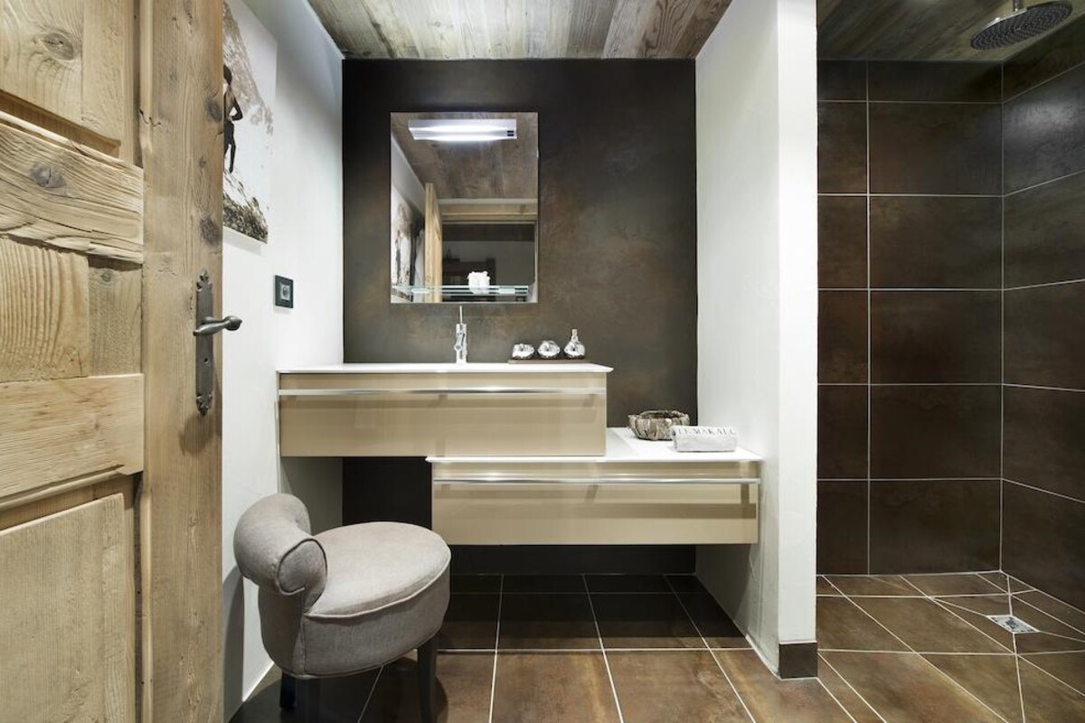 The Chalet Makalu has five en-suite bedrooms and is suitable for 8 adults and 2 children (in the bunk bedroom). The interior design uses traditional old wood panelling to give this lovely property authentic alpine style. 'Luxury', 'calm' and 'nature' were the three words that the interior designer used to base their work on. However, there are the modern conveniences of a sunken hot tub on the large sun terrace (with amazing far reaching views) and a separate TV room with cinema sound system.