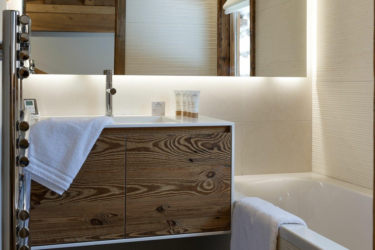 The interior style of this 86 square metre apartment is chic and stylish and guests will love the main sitting room area set within the eaves of the main residence. The property offers an deal location in the hypercentre of Courchevel 1850 and is just a very short walk from the bottom of the home slopes and the children's nursery area. Guests will also appreciate the proximity to the restaurants, shopping malls, ice rink and après ski bars.