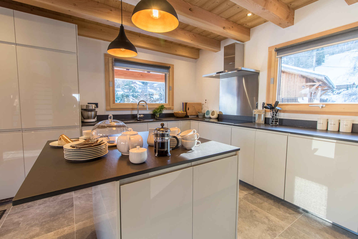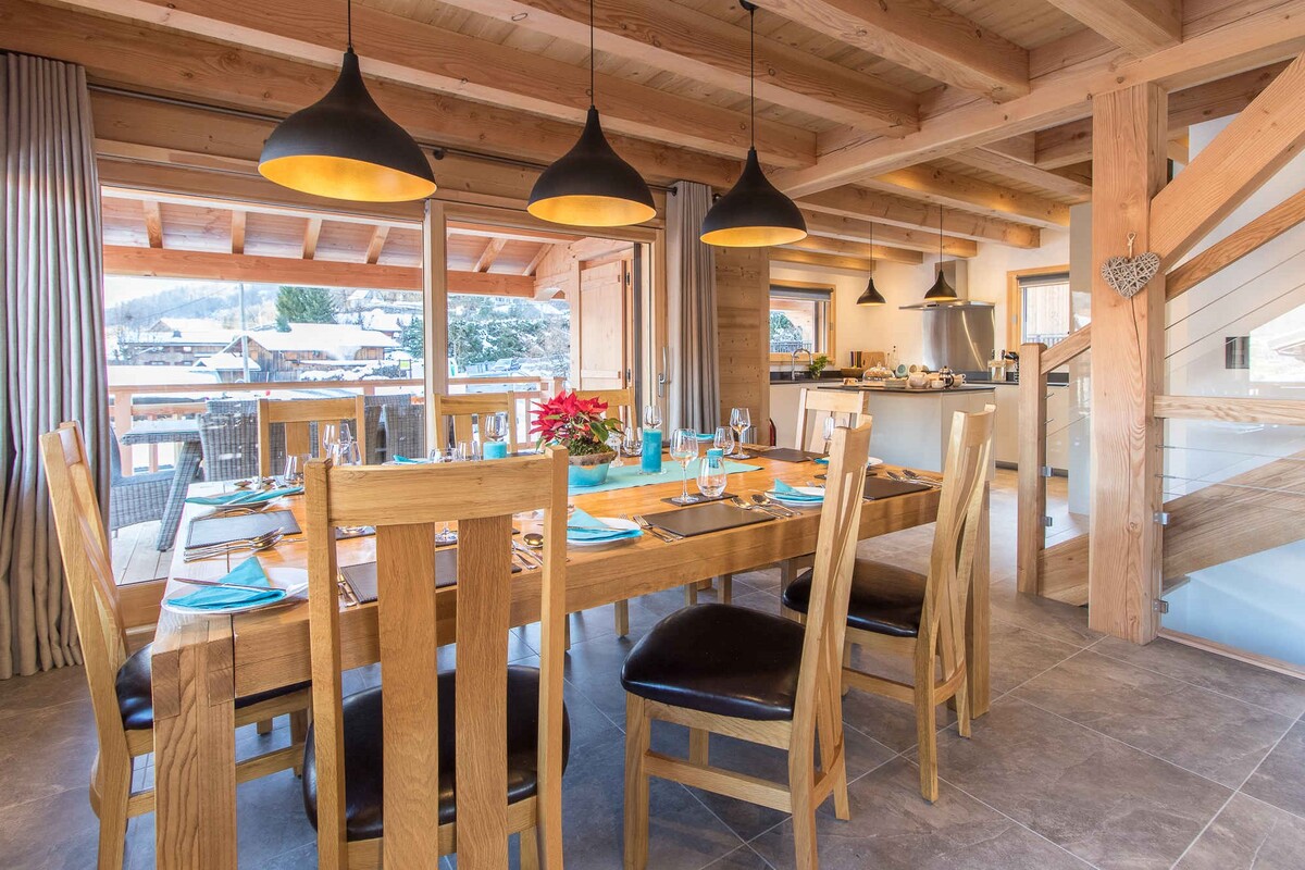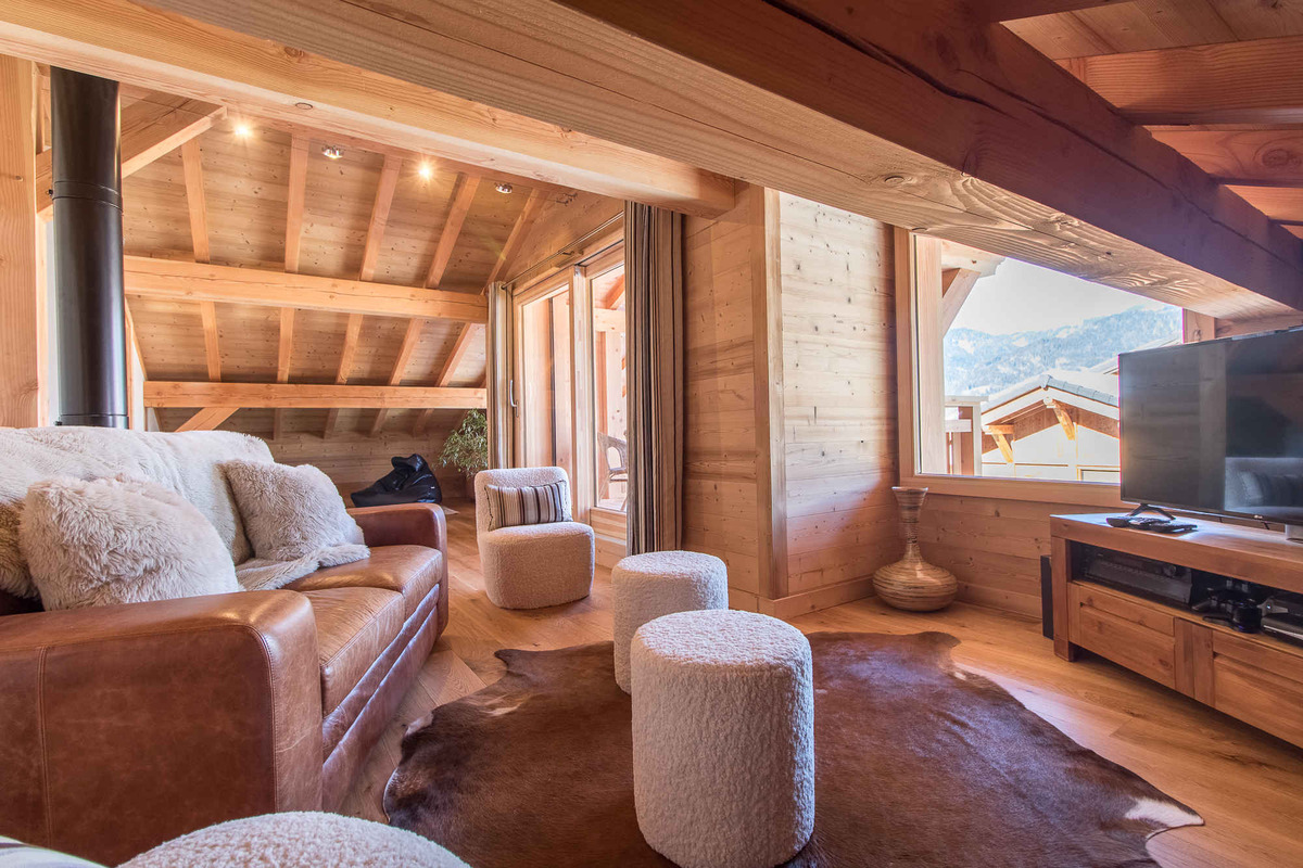 This luxury chalet, the third under the APASSION brand, boasts a large open plan lounge/dining room with comfortable leather sofas, wood burning stove and fabulous mountain views. In addition a large balcony to the side of the chalet provides magnificent views of the Criou and Mont Buet Mountain peaks. A second lounge on the top floor is a perfect place for children to play.