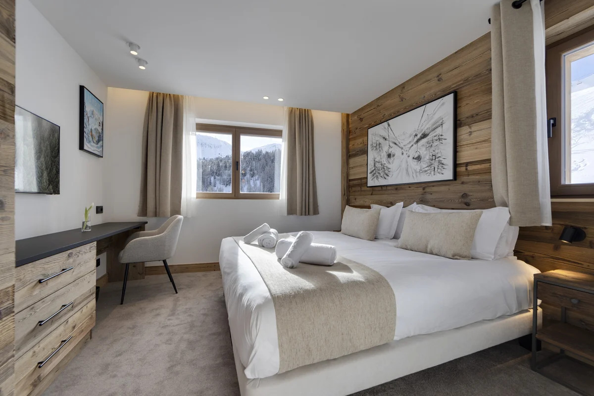 The Monte Rosa Suite is one of the apartments within the newly re-developed Graciosa Residence of Plagne Centre. The former chalet hotel has been completely re-imagined and rebuilt into 16 stylish slopeside catered properties, giving unrivalled ski in ski out access to the blue grade piste that leads gently down to the ski school meeting points and main lift hub.