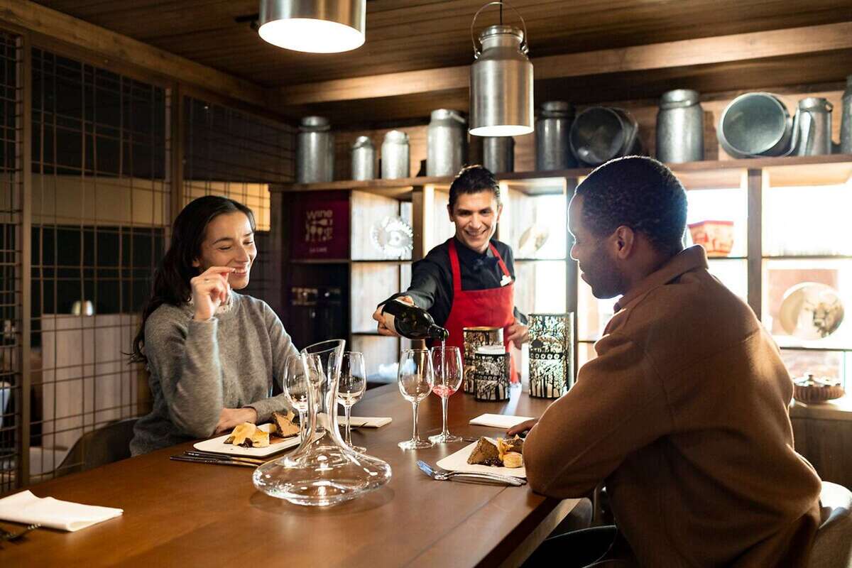 The main restaurant, Le Mont Valasian, is divided into four smaller dining areas, each with stunning views of the surrounding peaks. The interconnected nature of the separate rooms reflects a 'cordee' chain of roped together mountain climbers. One of the rooms, Snowball room, is designed especially as a family dining space.
