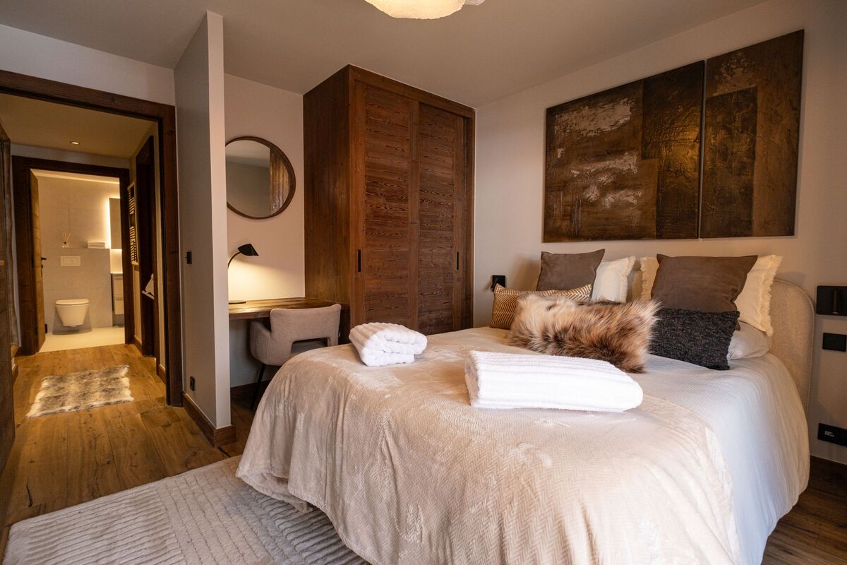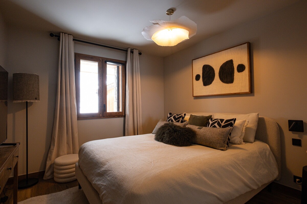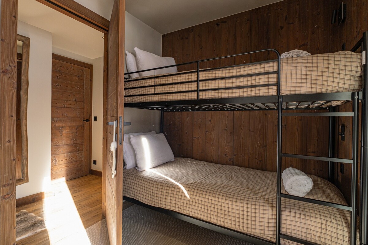 This stunning alpine property was completed in 2025 and offers high quality interiors and an especially impressive art collection - this is more than just a simple holiday let property. There is a lavish master bedroom with dressing room and luxury en-suite bathroom, two further en-suite principal guest double bedrooms and then two separate family wings ('left' and 'right'). Each of these family wings or suites contains a double room and a bunk room which share a family bathroom. The chalet therefore sleeps 10 adults in extreme comfort with the capacity to sleep another 4 children in the two bunk rooms.