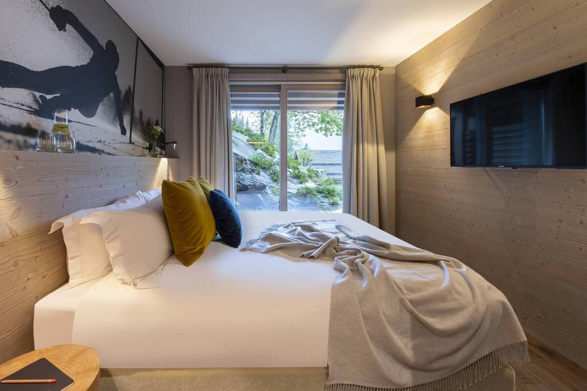 There are five bedrooms on the ground floor and a huge master double on the top floor of the chalet. There are two rooms (bunk room and double) that form a family suite with shared 'Jack and Jill' bathroom, and a further guest bedroom that can be made up as either twin or double.
