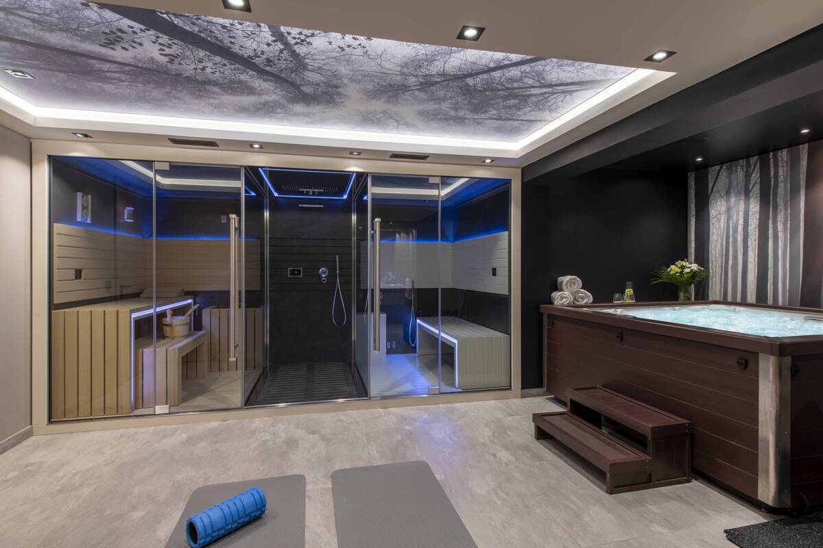 - Smart TV. Wi-Fi internet connection. Steam room, hot tub, sauna, gym, treatment room. Terrace Separate TV room. Elevator between floors. Wood burning fireplace. Ski & boot room with heaters. Garage parking for 2 x cars. Outside parking for 1 x car.