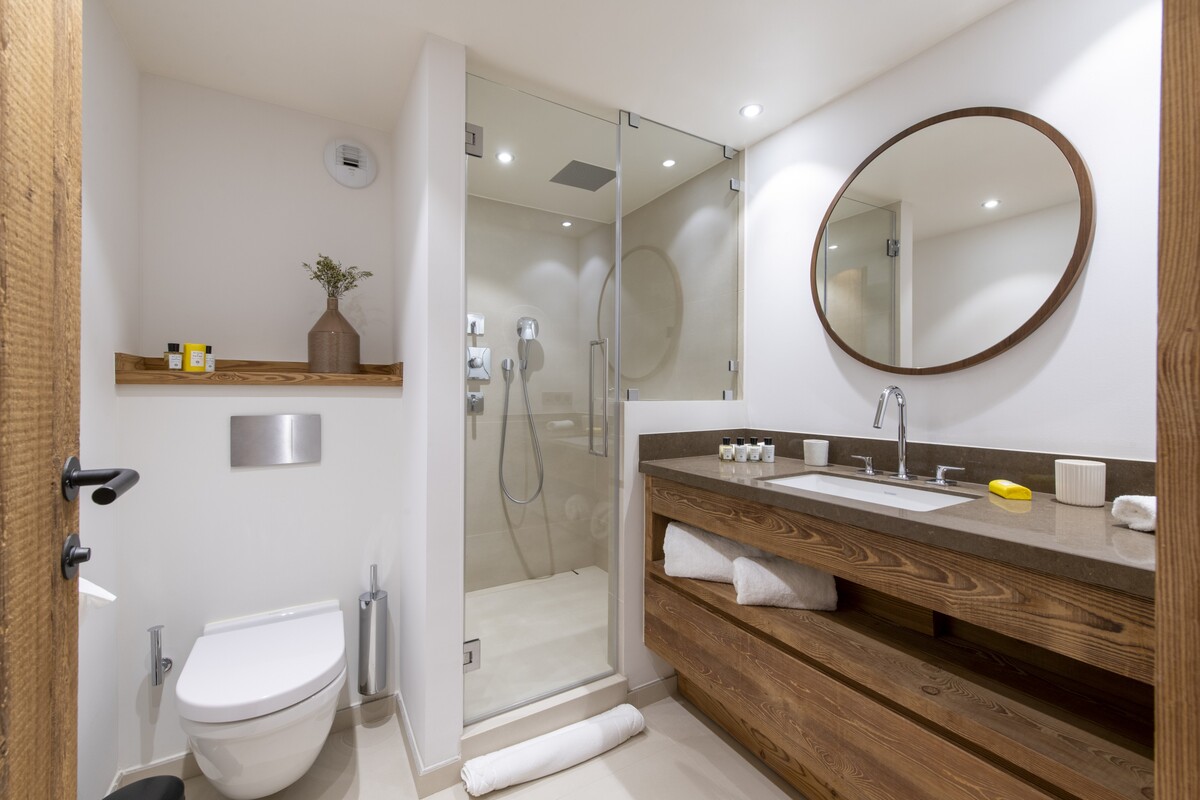 The main sitting room is divided into two separate zones (one larger and one smaller) and there is also a dedicated cinema room on the floor above. There is therefore plenty of space for guests to spread out and not feel that they are living on top of each other. Also on the same floor as the cinema room is the steam room (with separate shower) which is the perfect place to unwind after a hard day on the slopes.