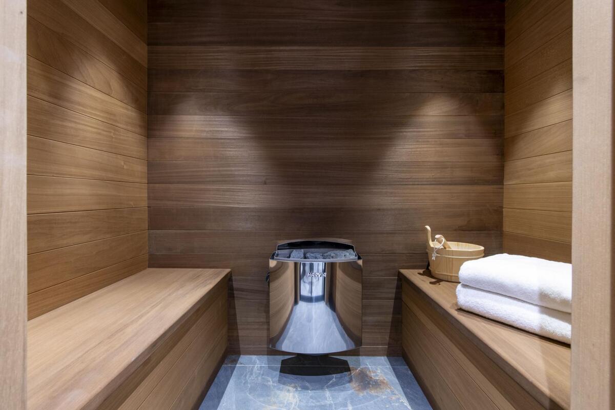 On the ground floor, convenience and relaxation take centre stage. A private ski room with boot warmers for convenience, the sauna for recovery. This floor also features a double bedroom with an en-suite bathroom.