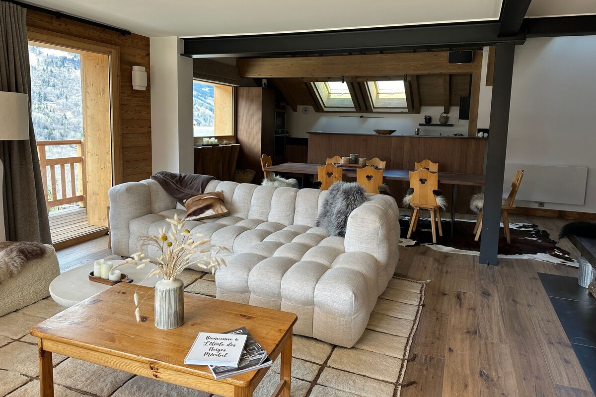 The large balcony houses a hot tub and for further guest relaxation there is an indoor sauna. The main living and dining room is on the second floor and makes the most of its elevated position with the same views across the main Meribel valley.