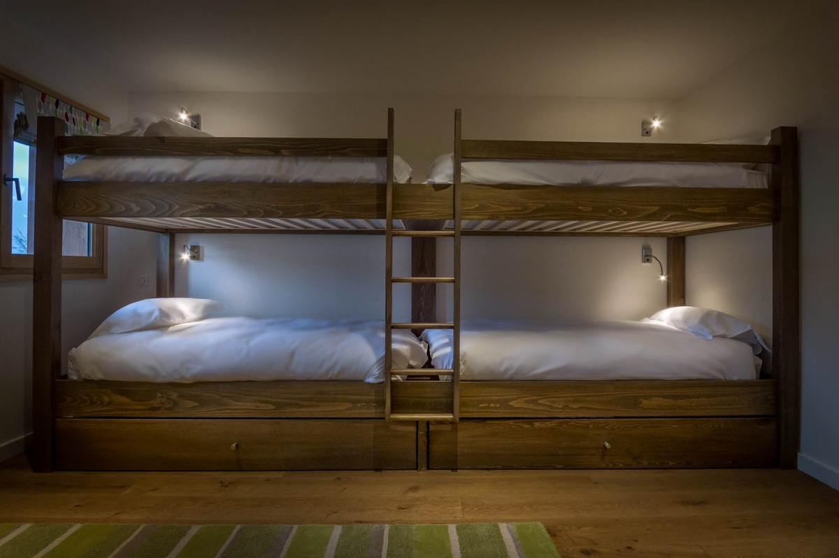 The lower ground floor is where the entrance to the chalet is located, with an impressive contemporary glass-fronted wine cellar. This chalet holds many extra facilities including boot room with heated racks, cinema room with sofas and large HD screen as well as a spa room with sauna and hydrotherapy shower and treatment room. The 5th bedroom is located on this floor that contains 4 full size bunk beds and 2 trundle beds with en-suite bath with overhead shower.