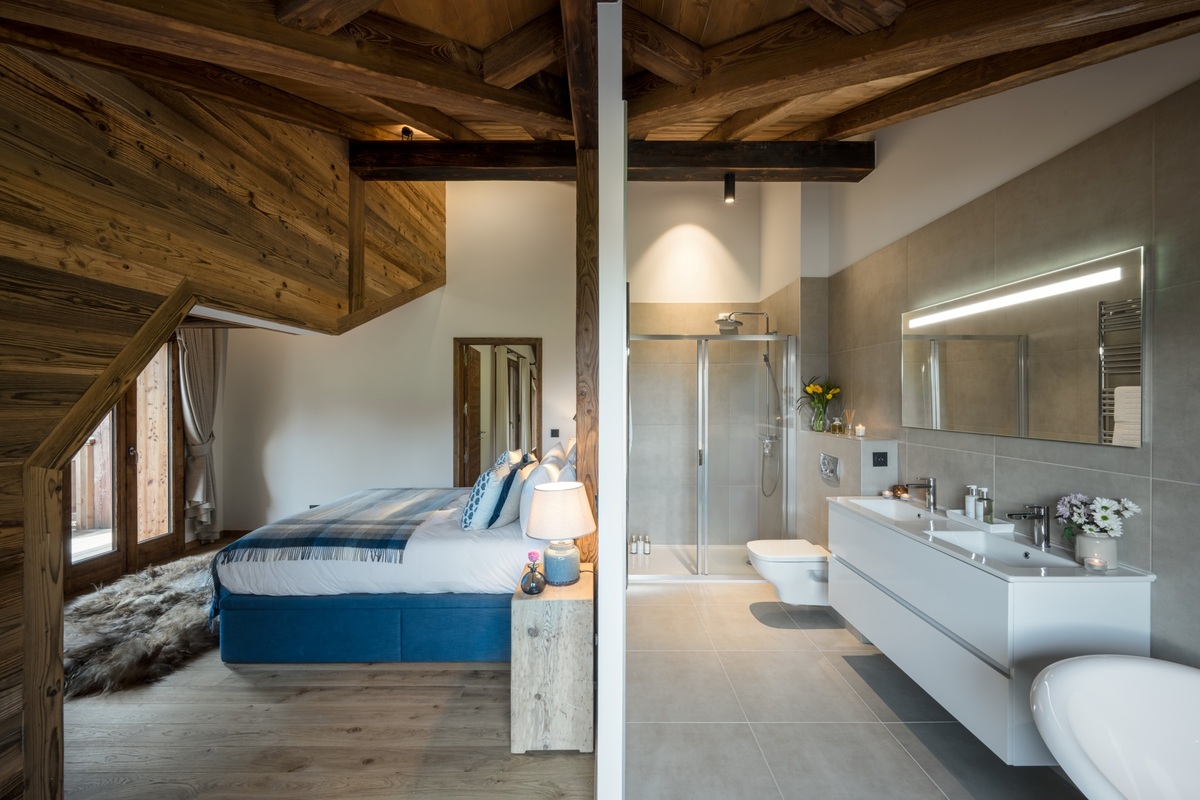 Chalet Joy boasts four nicely appointed bedrooms, most offering flexible sleeping arrangements, ideal for families and groups. The master bedroom features a king-sized bed, with a luxurious en-suite with a freestanding bathtub. Other bedrooms can be configured as twin or king-sized rooms, and the cinema room doubles as extra sleeping space. The bunk room sleeps up to four, in a twin/double and a bunk bed, perfect for kids or groups.