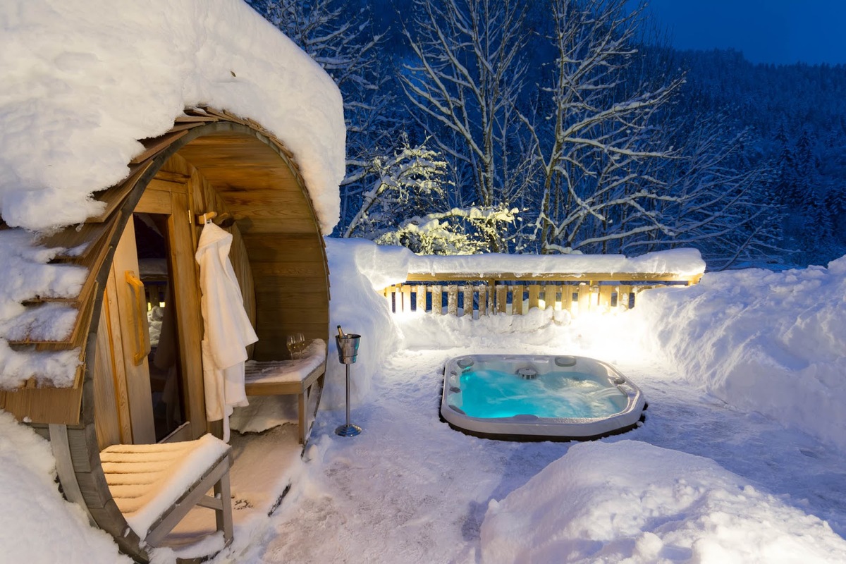 - Steam room, spa showers, treatment room and relax area. Hot tub, swim-jet pool, barrel sauna and firepit on deck. Cinema: HD projection screen, surround sound & console. Wi-Fi throughout. Satellite TV, on demand music. Spacious ski and boot room.