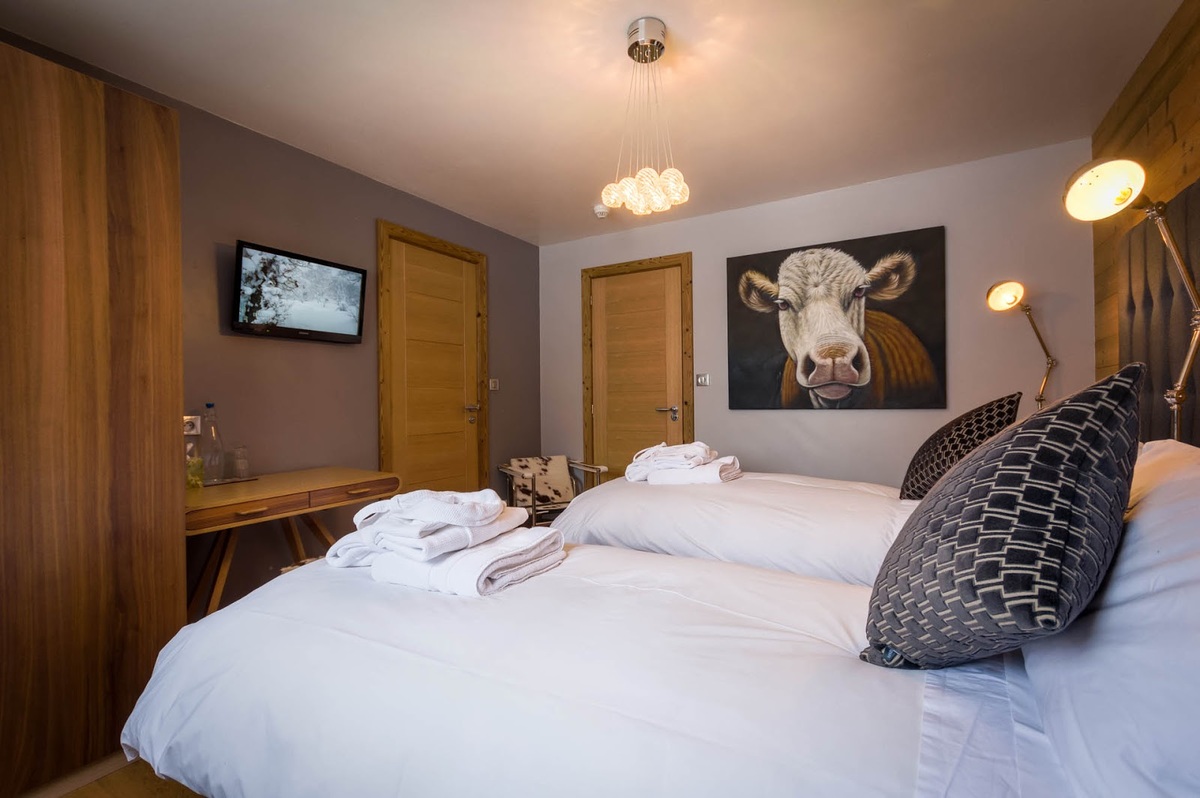 The top floor of this chalet has the remaining 4 bedrooms. Room 1 is the junior suite - a split level room with lounge and dressing area with twin/king size bed and en-suite shower. The other three rooms have twin/king sized beds and en-suite shower facilities and gorgeous mountain views.