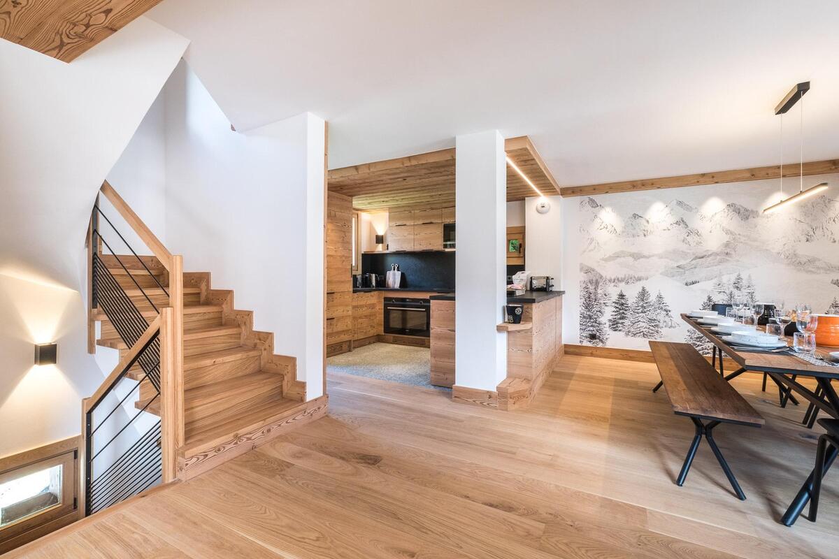 The chalet offers 160 square metres of internal space and has five guest double bedrooms sleeping 10 people comfortably. With its large windows all the chalet is bathed in natural mountain light. The chalet's simple, uncluttered design creates a soft, warm and relaxing ambience.