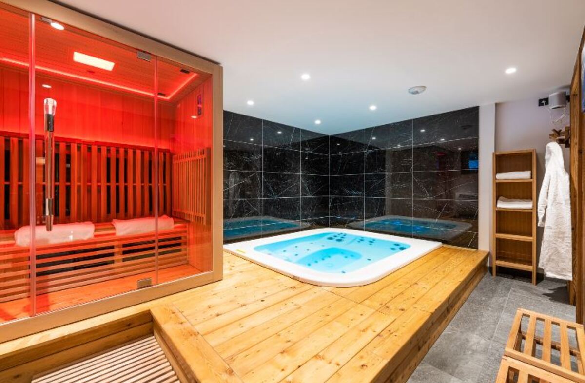 Guests will appreciate the chalet's amenities, including a large sitting area, TV-corner, wellness area with infrared sauna and hot tub.