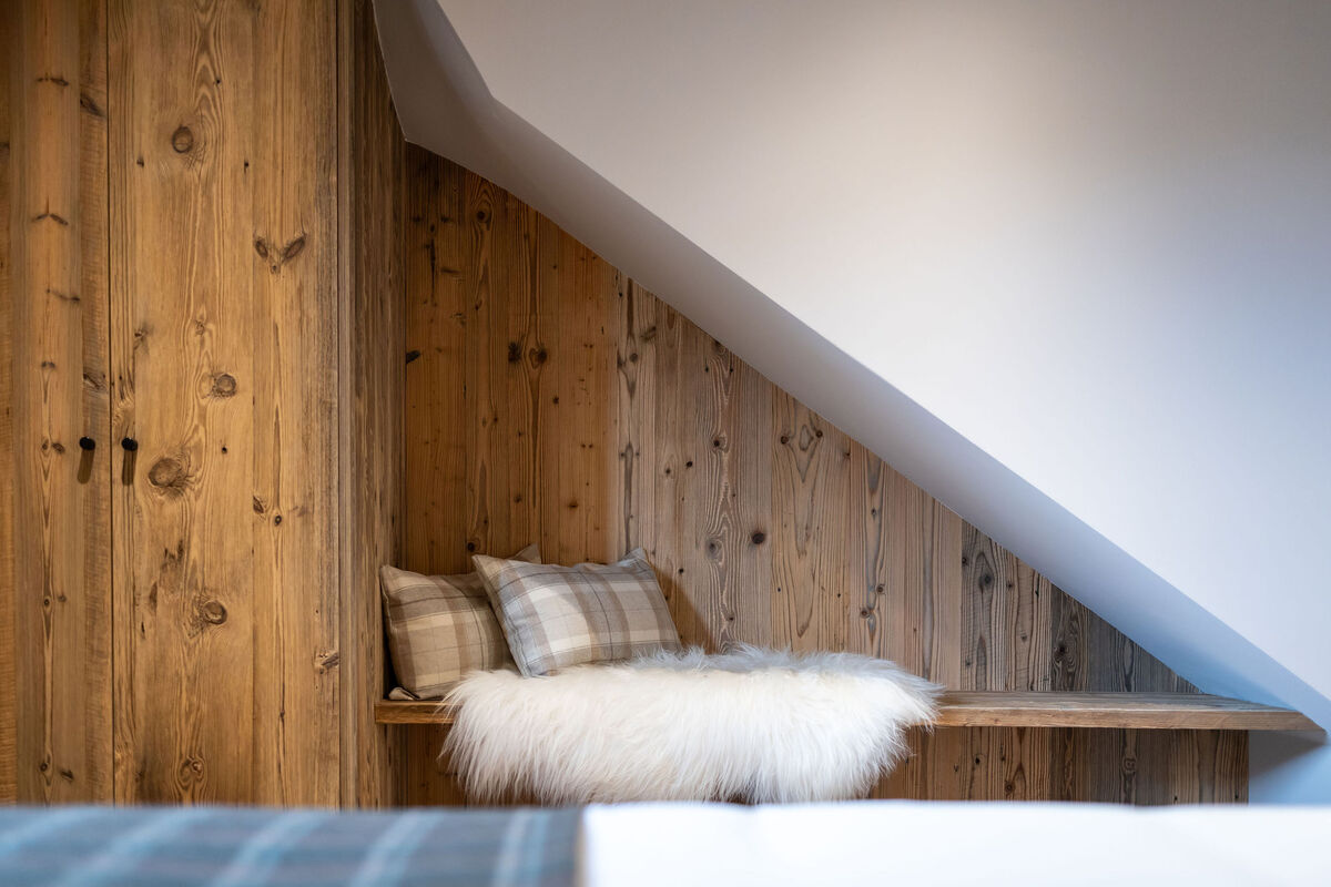 Designed to the highest standards, it sleeps up to 14 guests, with a vaulted-ceiling lounge, three-sided fireplace, and panoramic mountain views from floor-to-ceiling windows and balconies. The chalet features a wellness centre with a private Nordic spa, sauna, and gym, along with a cinema room, play area or office space, and a large boot room.