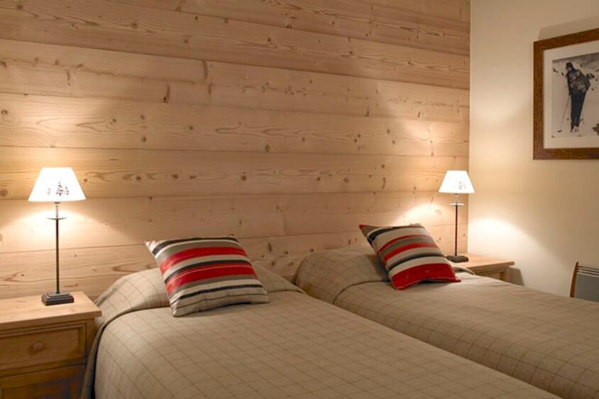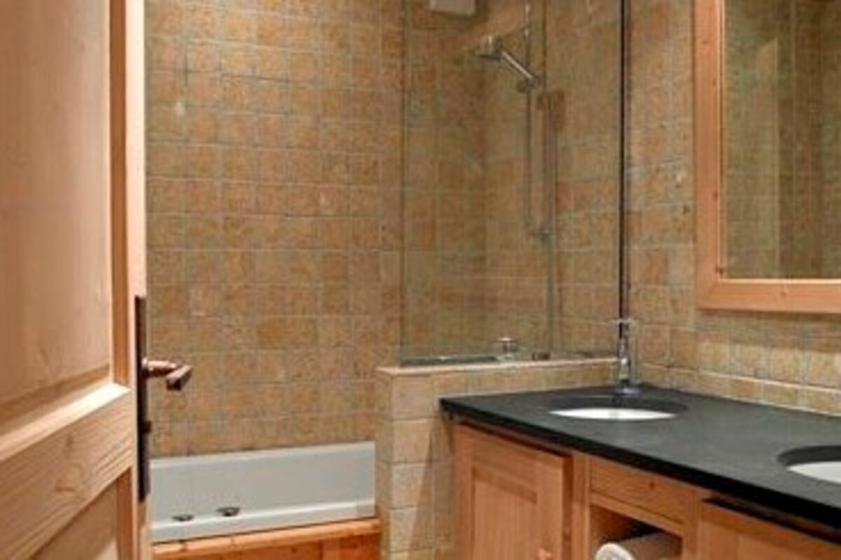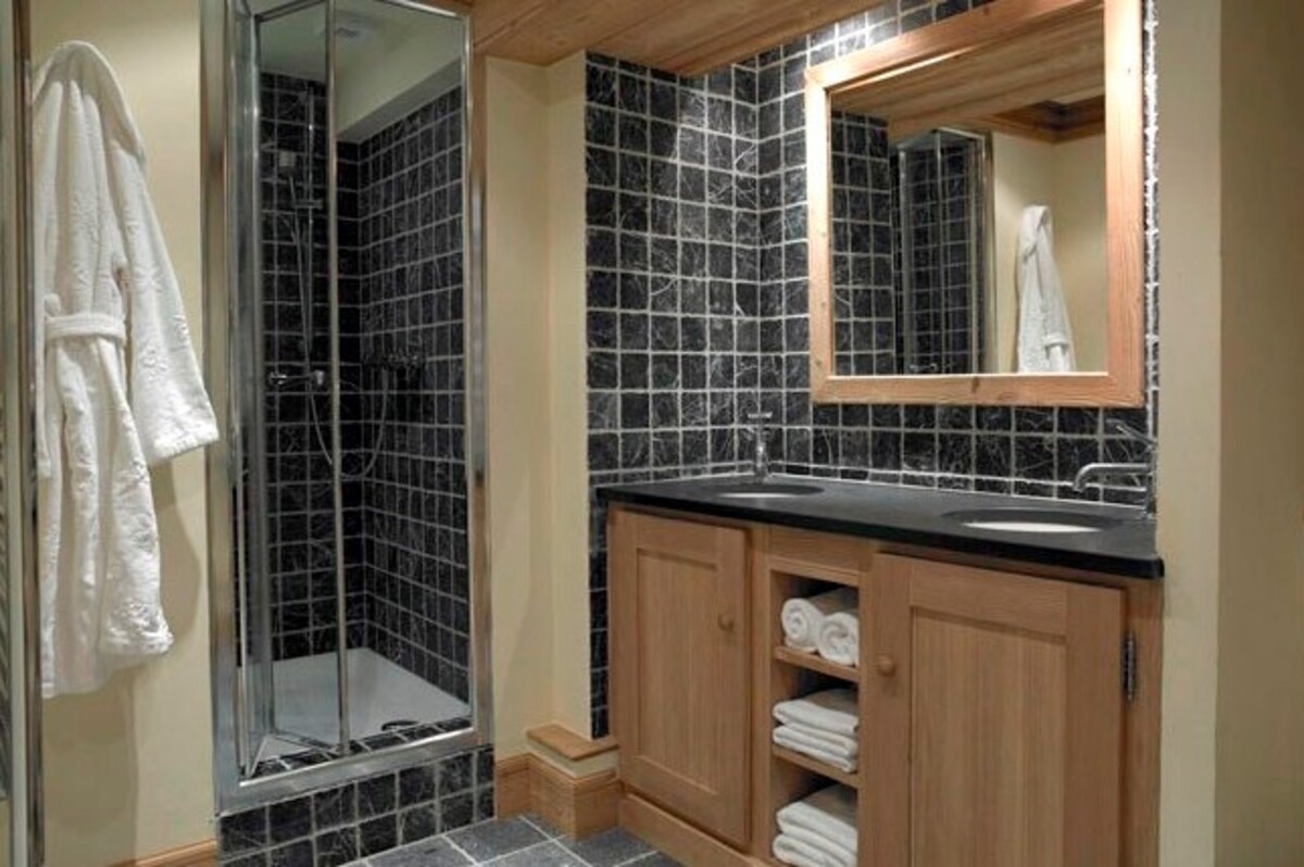 There are 3 well-appointed bedrooms in the chalet; the spacious master suite on the upper floor has an ensuite bathroom with a full size bath and shower attachment, double sinks and a separate ensuite wc. There are two further bedrooms; one twin/double and one twin. These rooms share a shower room and wc. All three bedrooms have access to a balcony. There is a third separate WC downstairs off the entrance area.