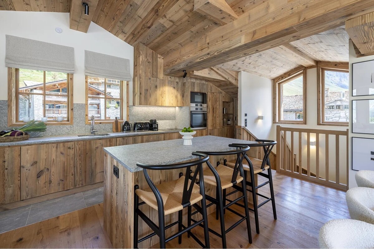 Perched at 1930 metres in Val d'Isere's Le Fornet area, Apartment Arolay Penthouse offers a luxurious mountain escape with views across the Bellevarde, Solaise, Signal, and Tovière summits.
