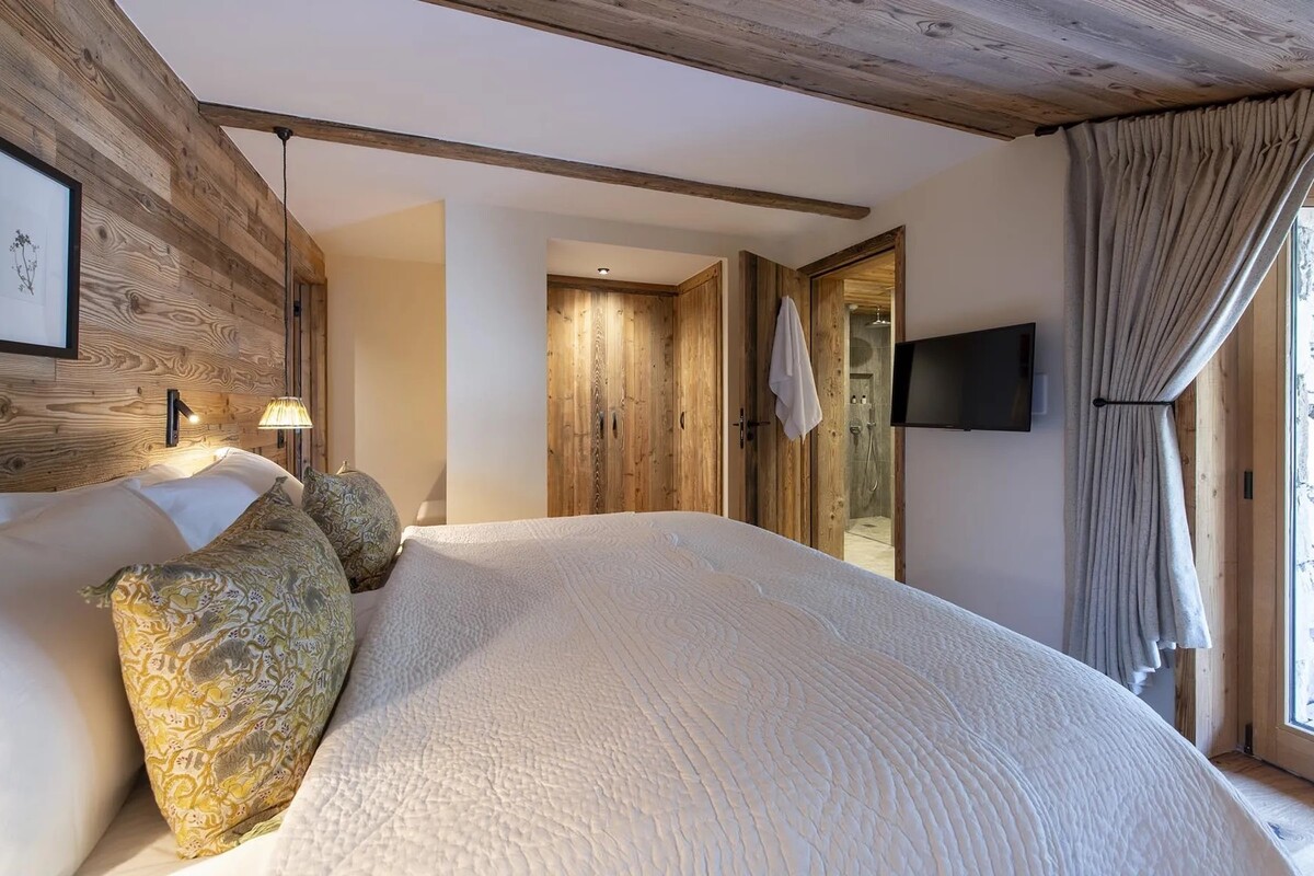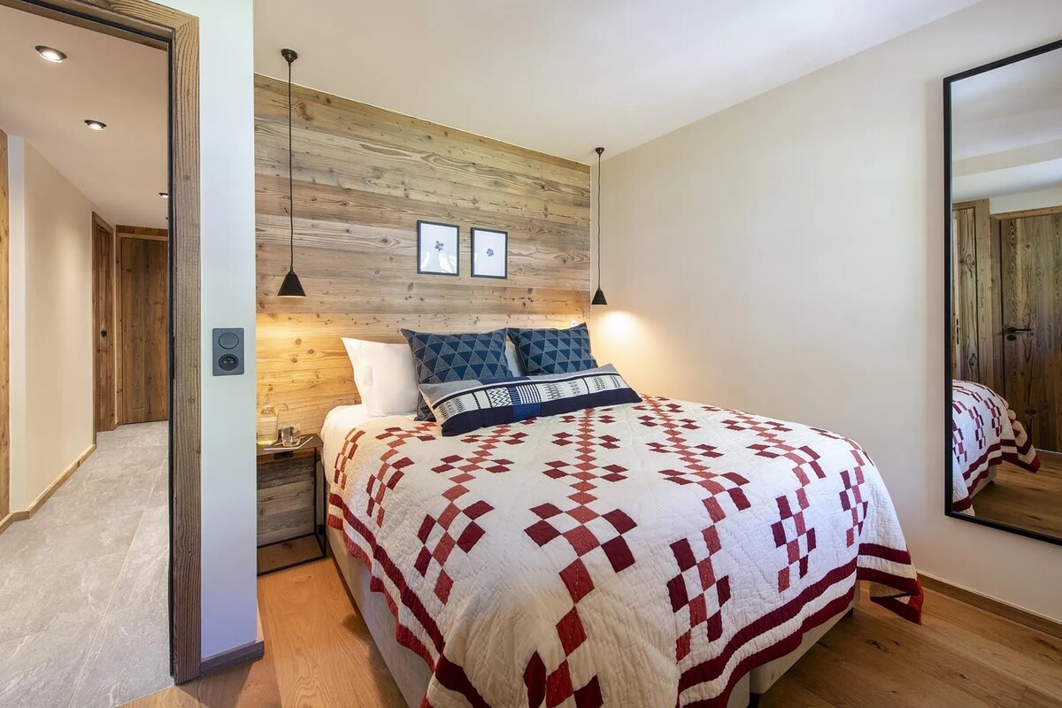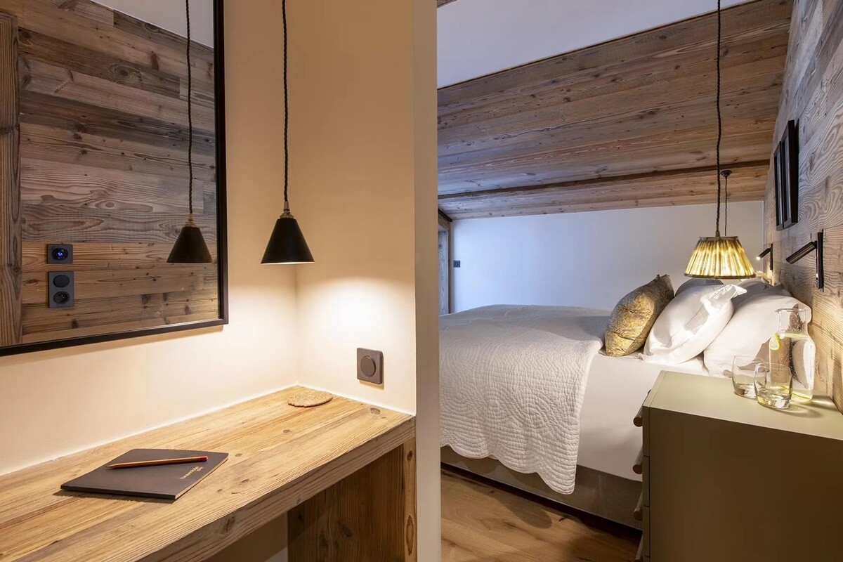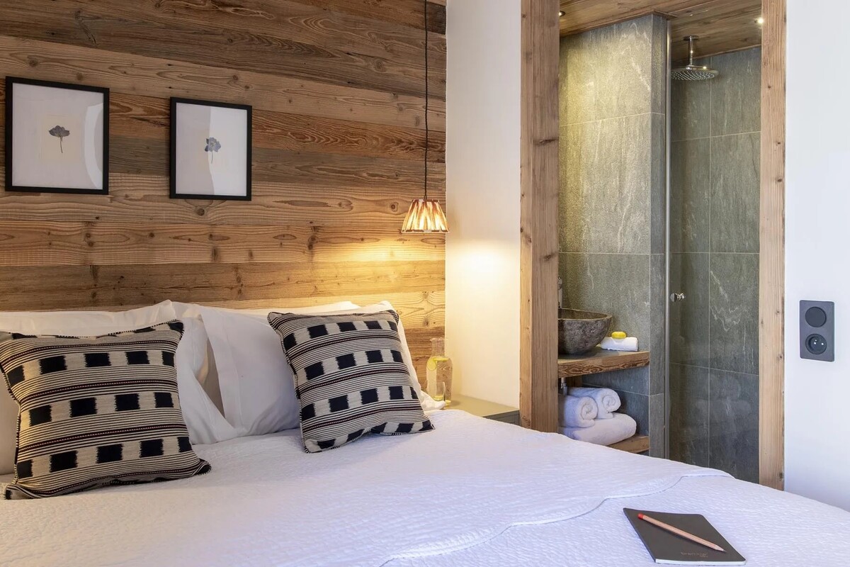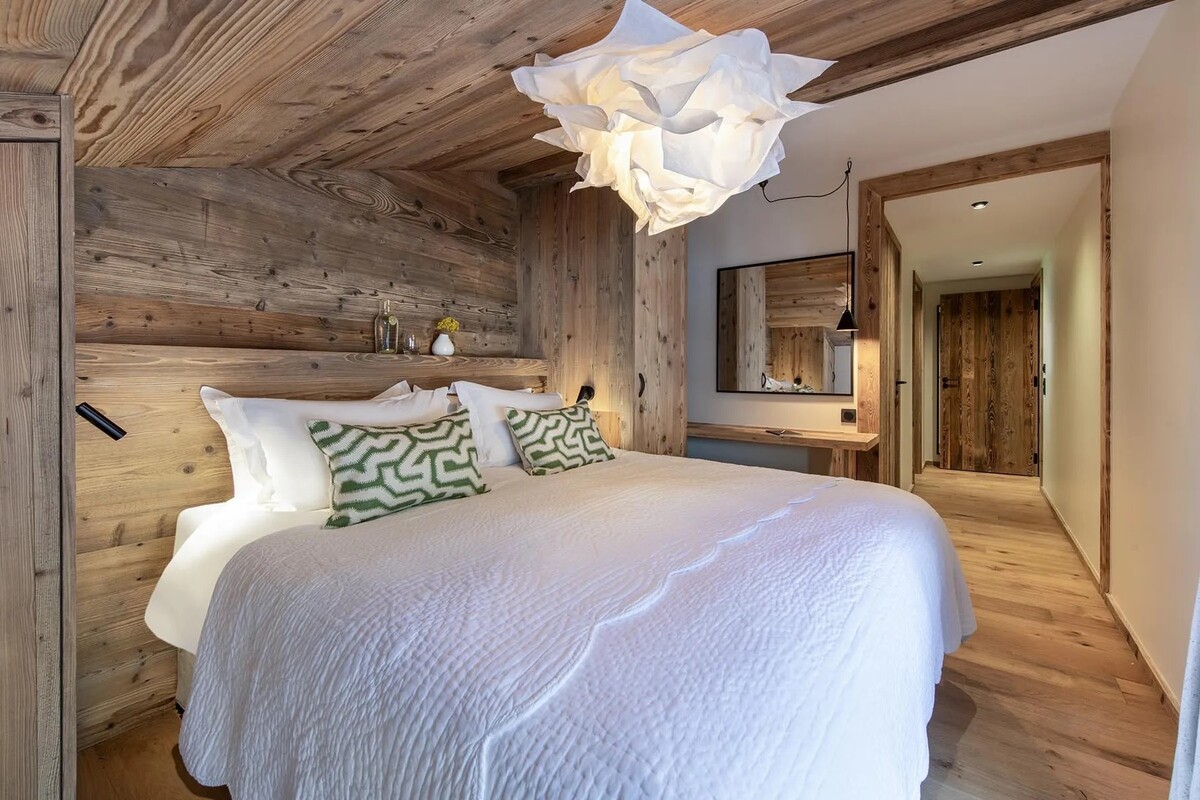 This unique apartment sleeps up to eight guests in four elegantly decorated ensuite bedrooms across 155 square metres, combining contemporary design with the charm of a traditional chalet.