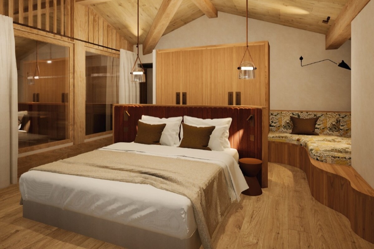 With an in-resort driver service at your disposal, getting to and from the slopes is effortless. Back at the chalet, your private ski room awaits, equipped with heated boot warmers. Your very own bar is fully stocked and ready for après-ski. The private spa area features an indoor pool, hot tub, hammam, and a serene massage room.