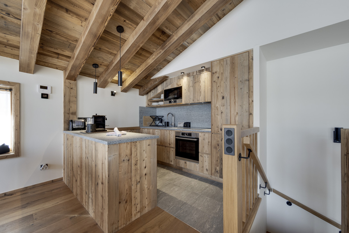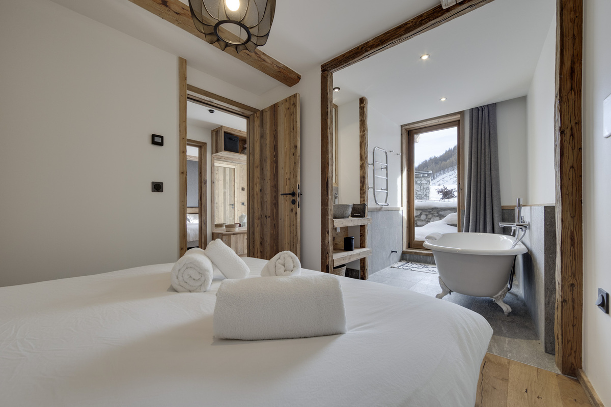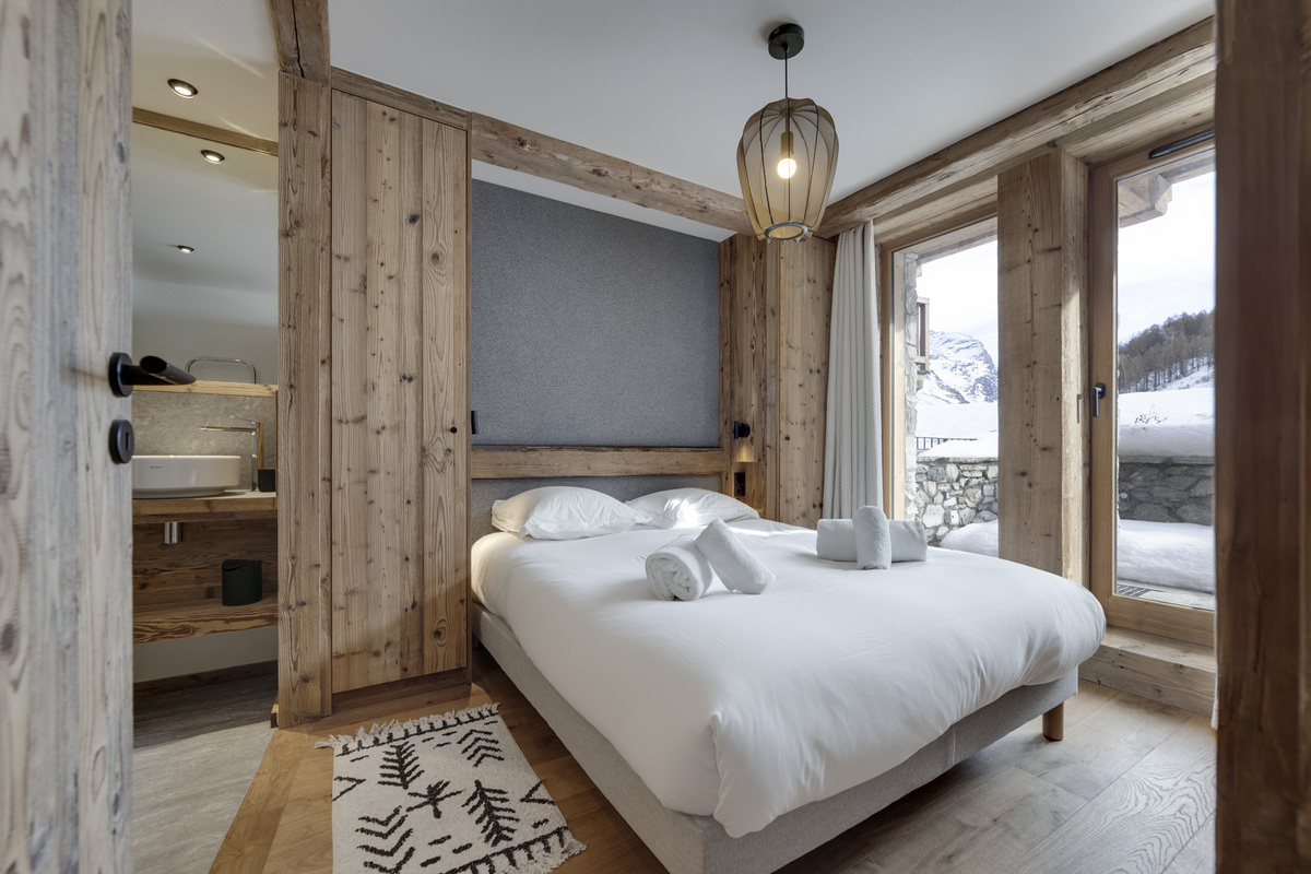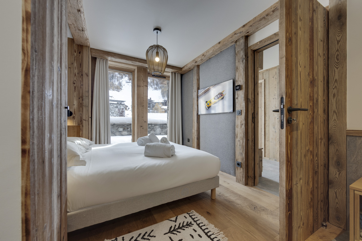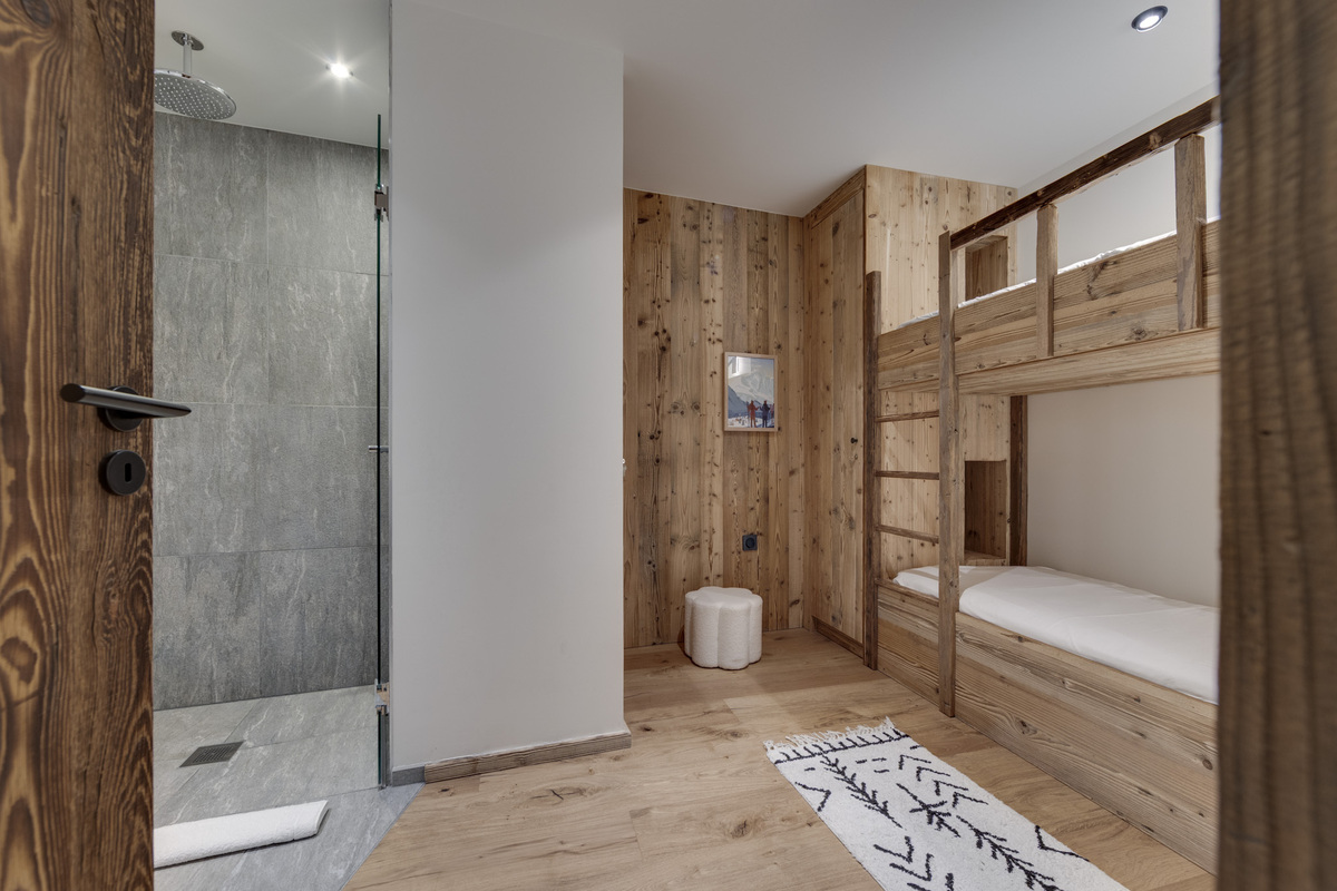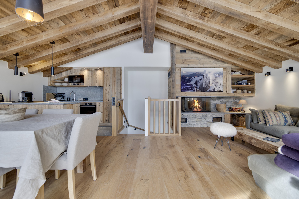 The Apartment chalet Le Petit Joserary is new to our Val d'Isere portfolio of properties for the 2025-26 winter season. This 105 square metre chalet offers two main en-suite guest bedrooms (one with a bath) and also a children's bunk room. The south facing views from the upper floor open plan communal area are stunning and there is plenty of space for 4 - 6 guests.