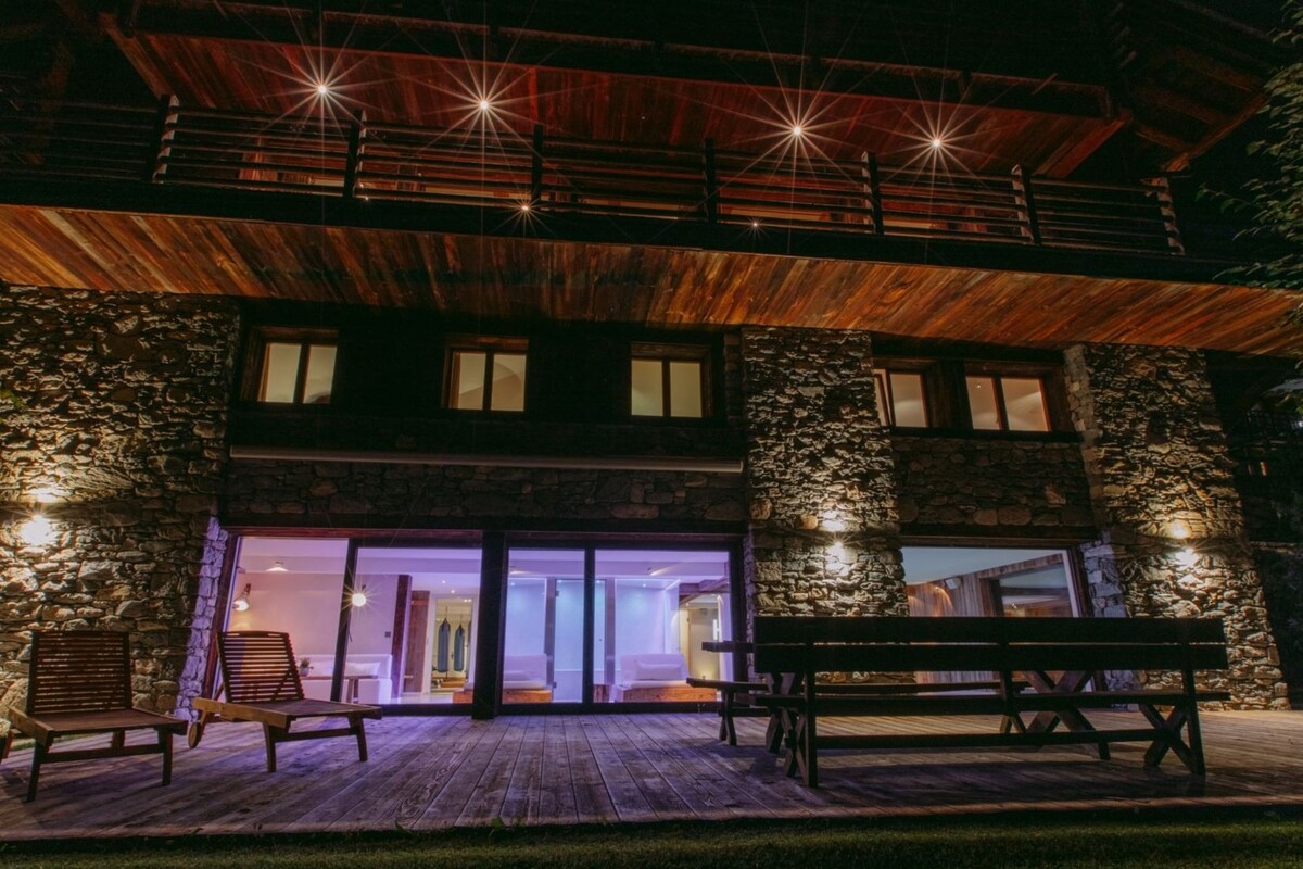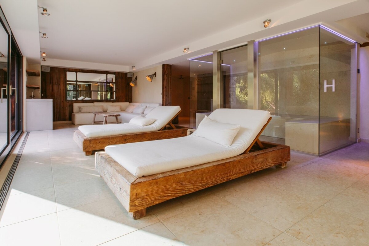 The lower two floors of the chalet, house the spa and entertainment areas including an 8m x 3m pool with swim jets, glass hammam, sauna, gym, outdoor hot tub, bar area and cinema as well as a further twin en-suite bedroom and staff apartment with separate entrance.
