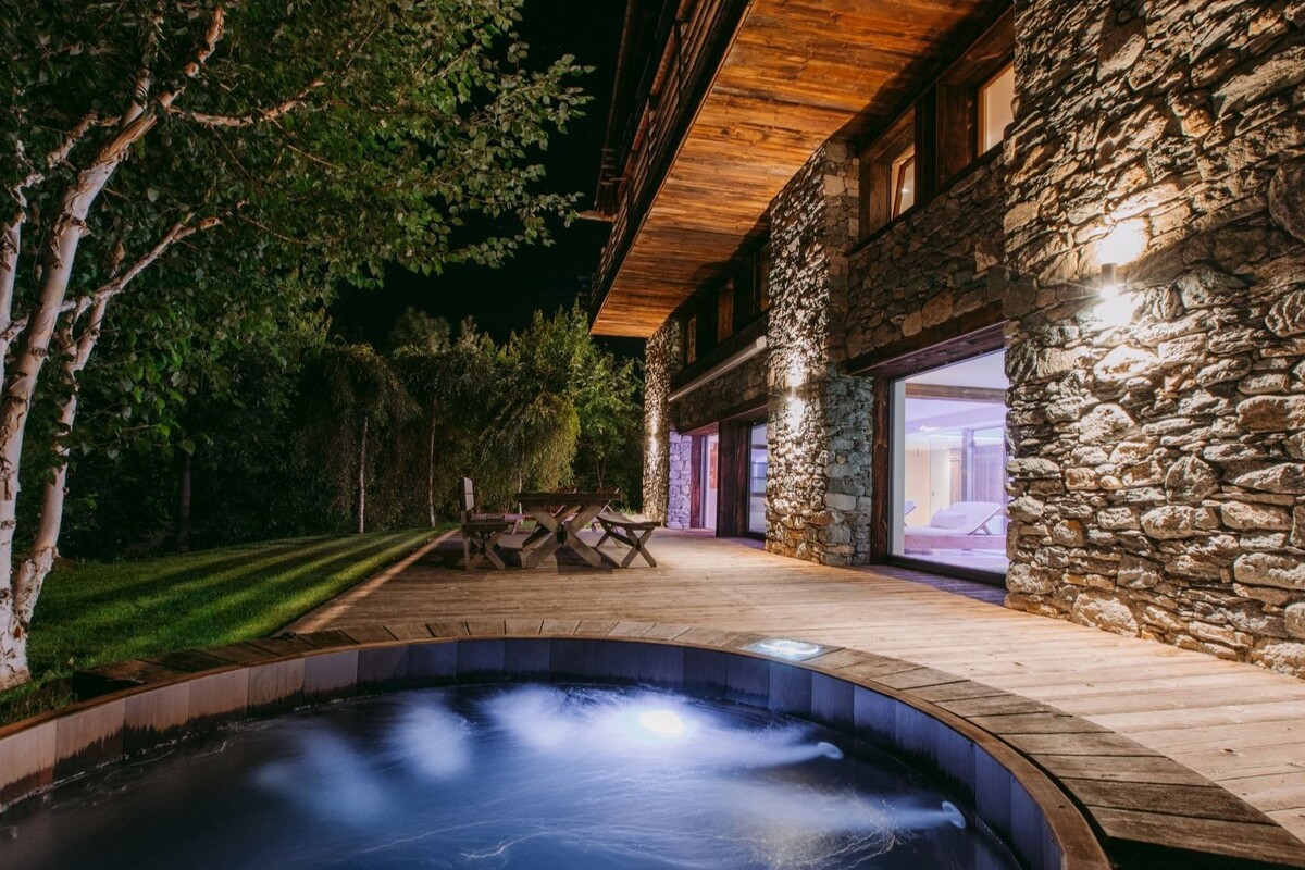 - Exterior parking for 3 vehicles. Spa: pool, sauna, hammam, cedar outdoor hot tub and gym. Cinema room. Bar and relaxation area. Lift access to all floors except the top floor. Office with fireplace. Laundry facilities. Driving service 08.00hrs - 22.00hrs in and around resort.
