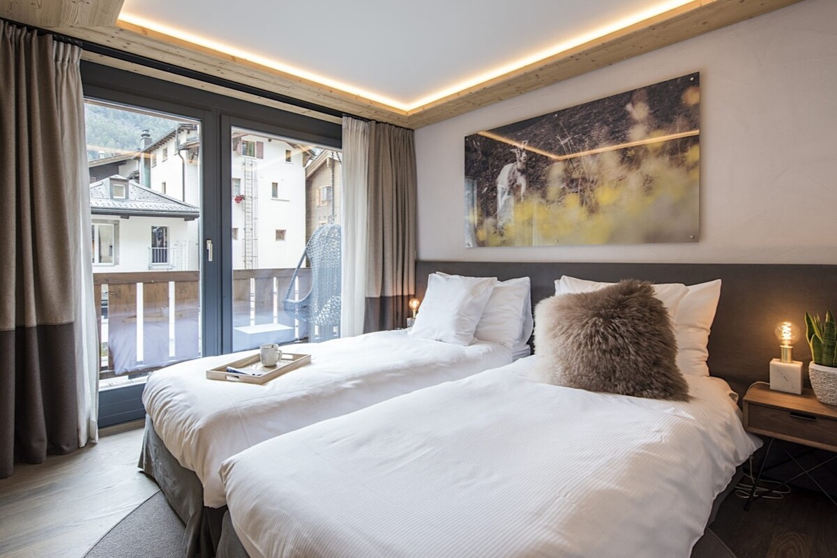 Kern Peak is self-catered two-bedroom apartment offering comfortable accommodation for up to four guests. Spacious at 80 square metres, the apartment is centrally located - just a few steps from Zermatt's high street and only 50 metres from both the Gornergrat and main train stations. Located on the second floor of Haus Nevada, it features balconies facing both east and west.