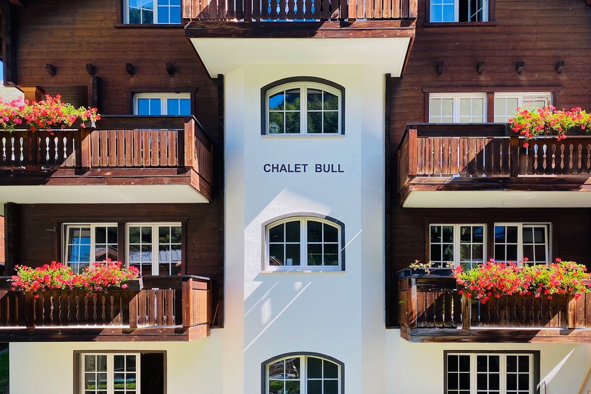 Chalet Bull is a lovely 4 floor chalet style residence located in an enviable position on the slopes above the main Klein Matterhorn lift station. There are four separate apartments (one on the ground floor, two on the 1st floor and the fourth apartment on the 2nd floor) and they all have lovely Matterhorn views. At the end of the day it is possible (conditions allowing) to ski back to within one minute's walk of the chalet building and in the morning you can ski from the same point down to the main cable car station.
