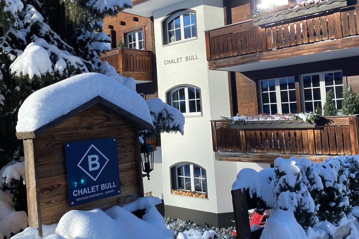 We are delighted to offer Chalet Bull in Zermatt. Made up of 4 separate apartments bookable as one large property for up to 18 guests it is possible to ski back at the end of the day. Access to the main lift station is also very easy in the morning with a short ski down to the main cable car station.