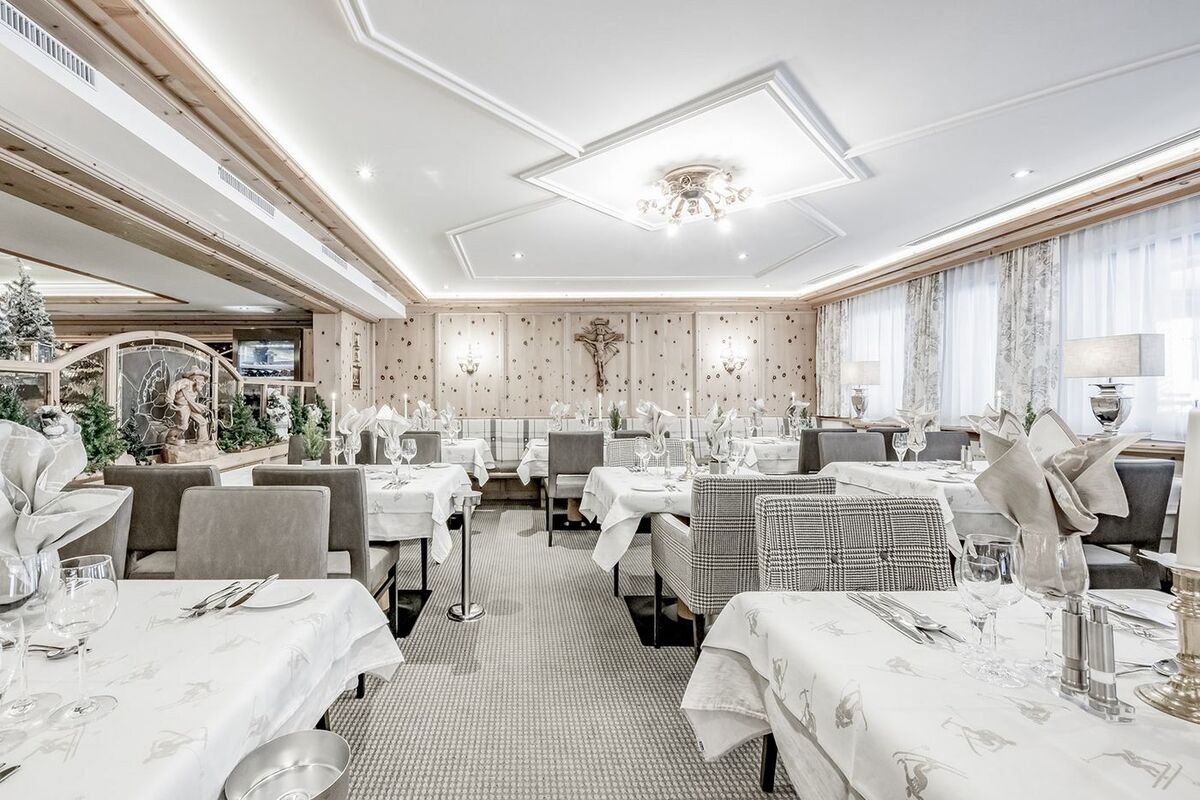 Spacious lounge with cocktail bar; large sun terrace with ice bar/cafe overlooking the slopes. Hexenküchl speciality restaurant; relaxation centre with loungers, sauna, whirlpool and steam room. Children's playroom and lift.