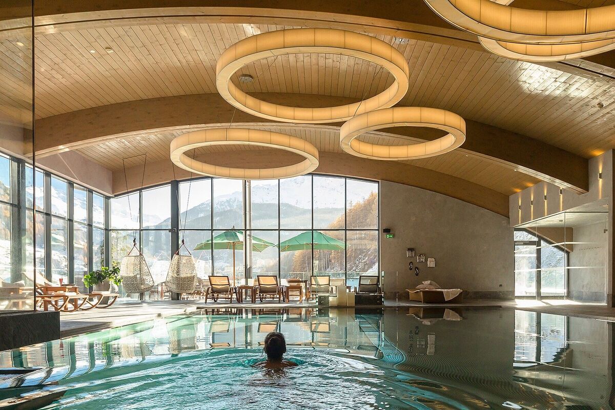 The huge spa area offers 1,700 square metres of relaxation space and thoughtfully includes a 'swimwear sauna' for the more bashful international clients who do not wish to embrace full Austrian spa nudity.