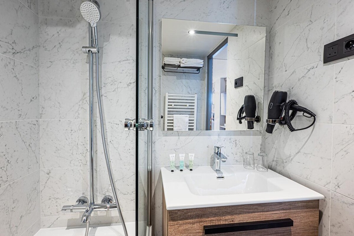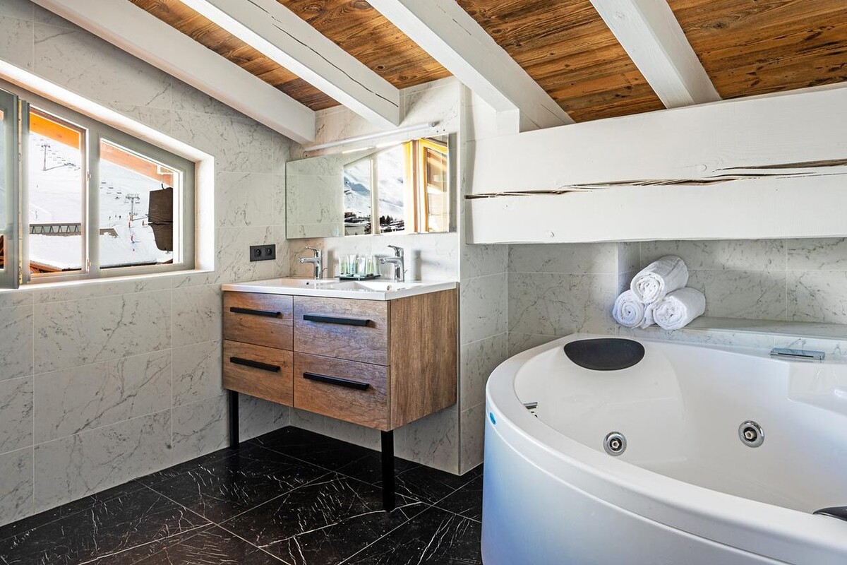 The hotel has a small spa with a sauna, hammam and hot tub where you can soothe aching muscles after a day on the slopes.