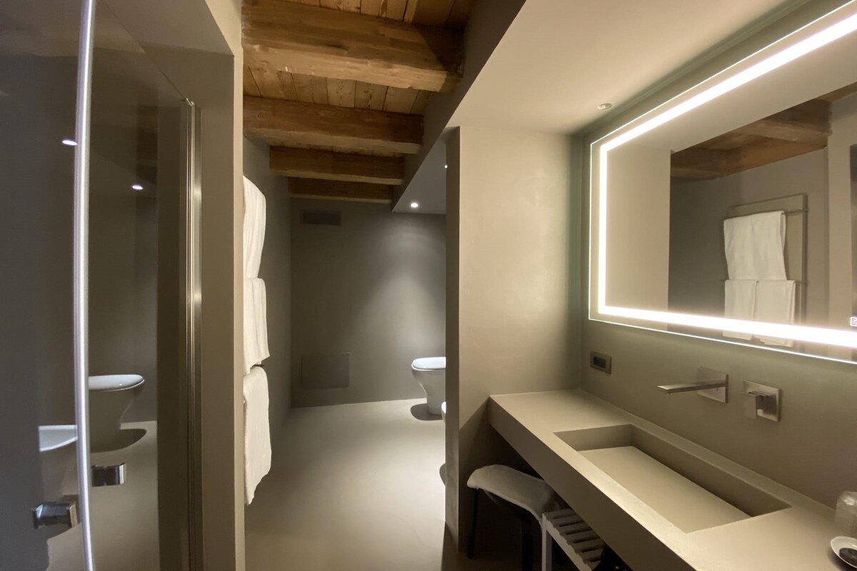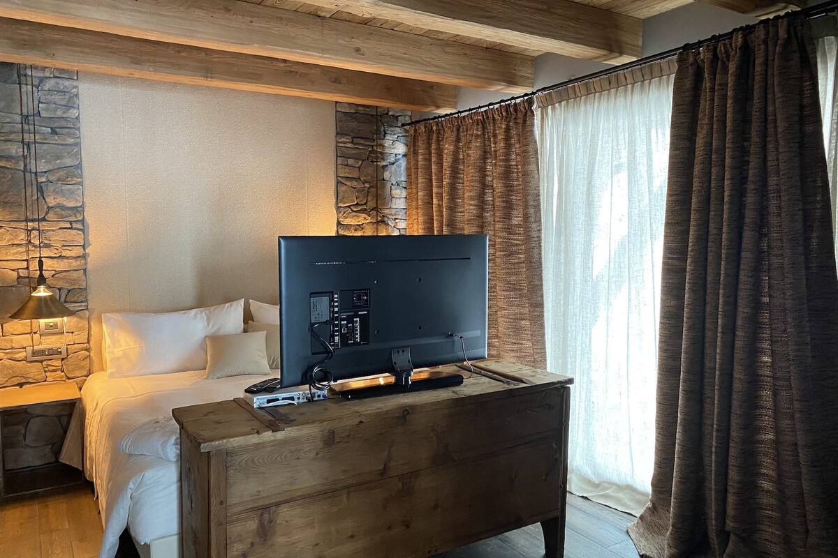 There are just 24 rooms: 12 classic, 9 superior, and 3 suites. The main difference is in style - the classic rooms are simple and modern, whereas the superior rooms have more mountain charm, with wood panelling, floorboards and heirloom furniture.