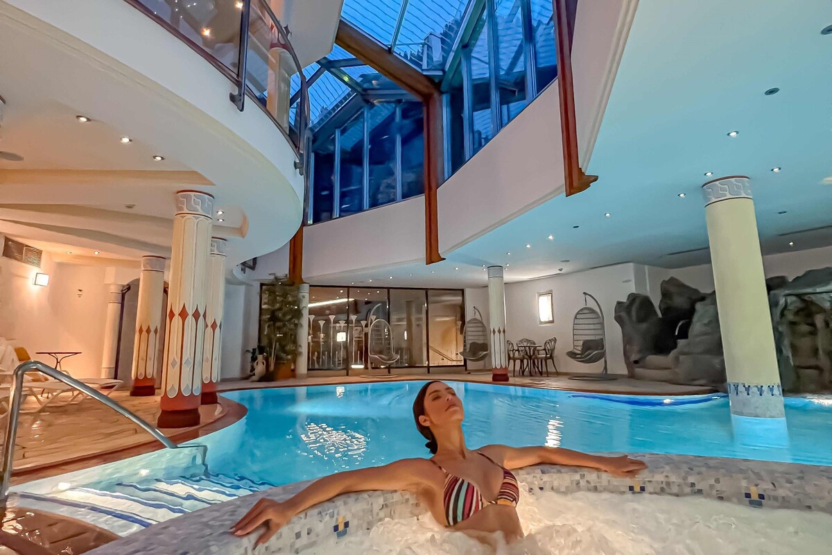 Cigar lounge and lounge bar. Children's play area. Spa and wellness centre complete with indoor pool, sea-salt water whirlpool, steam room, Finnish sauna, ice fountain, hydromassage Kneipp foot bath, heated relaxation beds, water beds and gym.