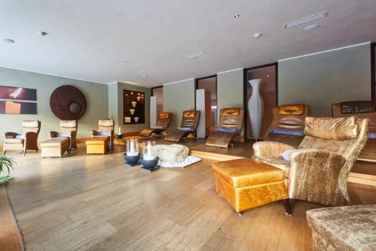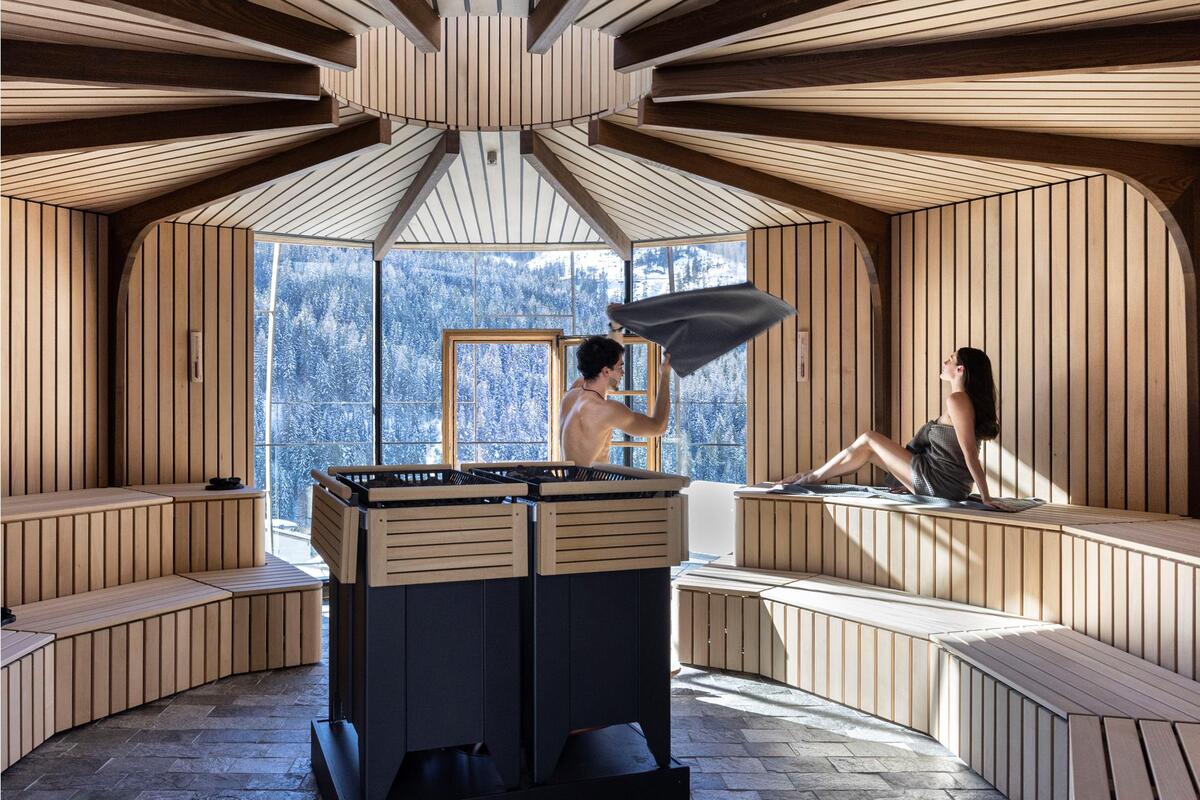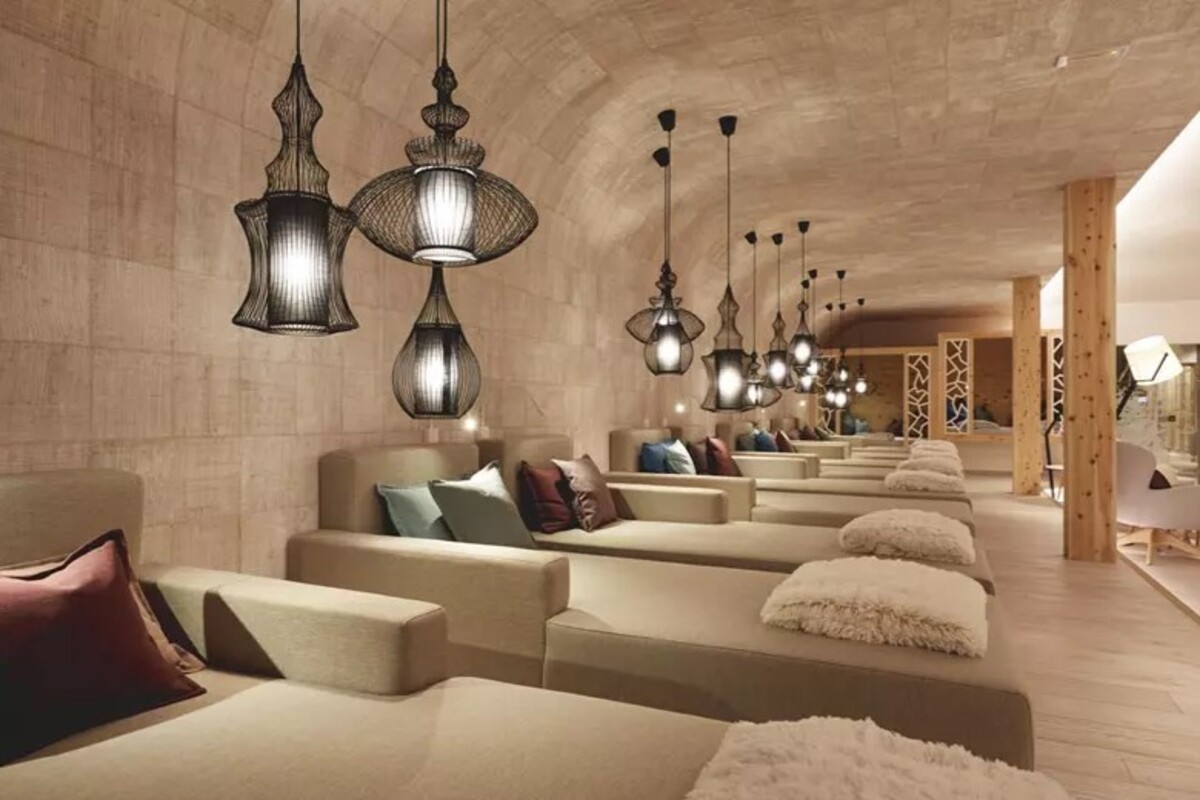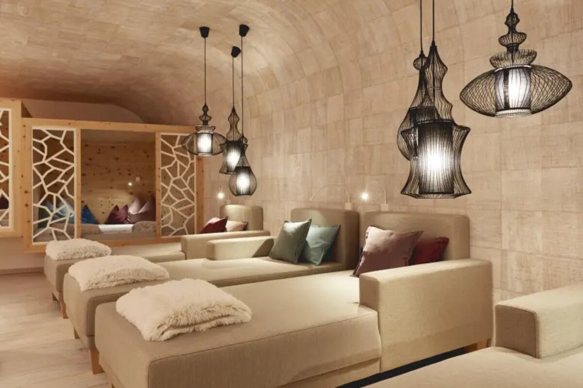 The Spa at the Fanes is quite spectacular. With its pine sauna, salt bath, sanarium, Turkish steam bath, brine Jacuzzi, panoramic relaxation room, indoor pool and outdoor brine pool, Alpine sauna in the garden and amazing range of treatments, you might never get out onto the slopes.