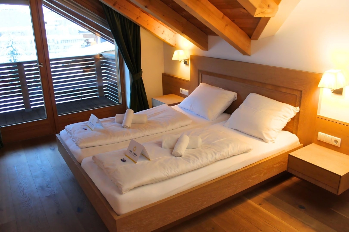 The smaller Dorfer Apartment sleeps 6 - 8 guests in three bedrooms and occupies the 4th floor of a smart residential building. The apartment is accessed via a lift from the ground floor and offers lovely far-reaching views over the resort centre from its elevated position. The comfortable living room features a generous balcony which overlooks the bustling centre of Gerlos resort. Two of the bedrooms also have their own balcony. Parking is available for two cars in the building's garage.