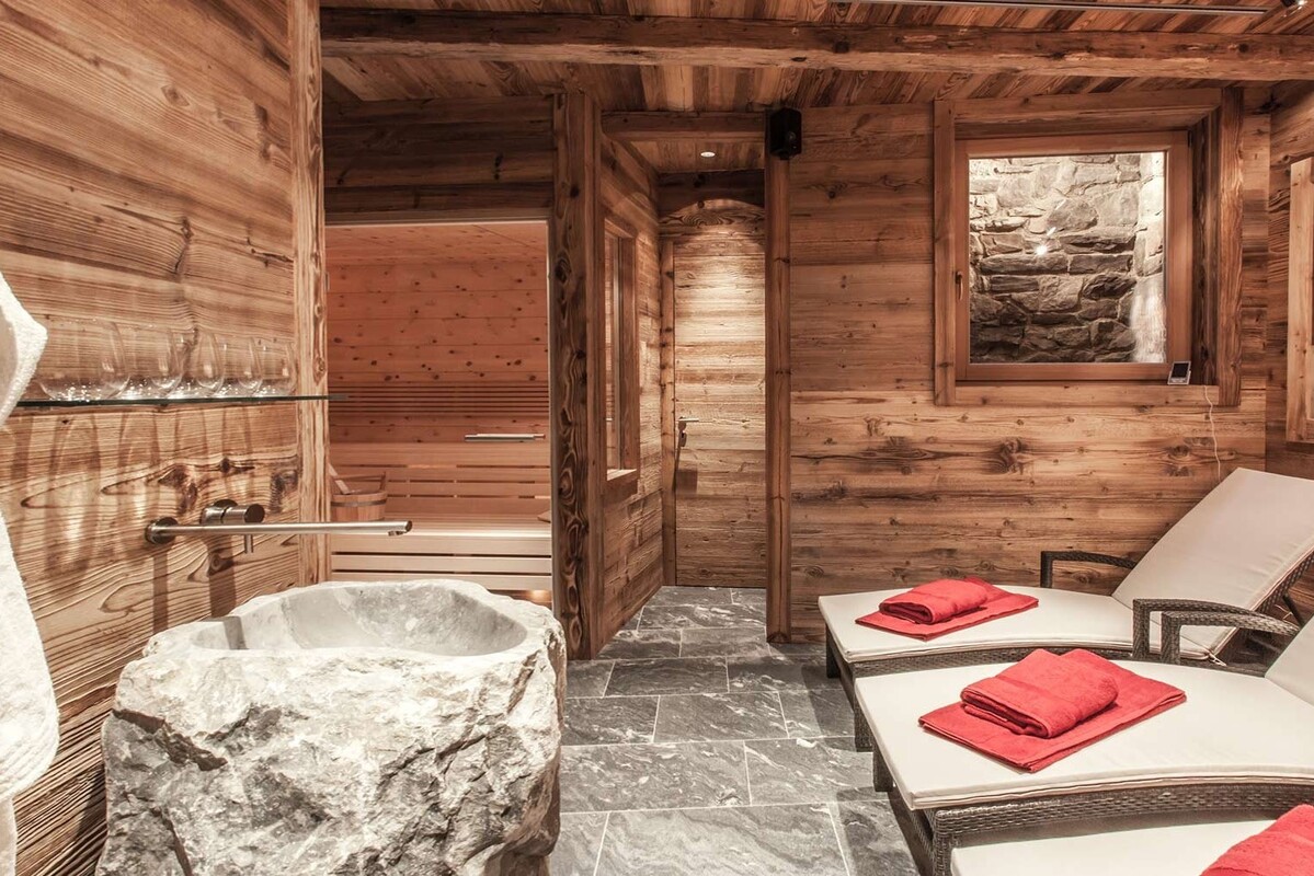 - SPA with sauna and hammam. Private gym. Internal lift to all floors. Wi-Fi and Sonos sound system. Bar: complimentary aperitifs, cocktails and soft drinks. Bedrooms with TV, fireplace, Sonos, telephone and safe. Large terraces with unique views and open-fire. Ski room. Underground parking in Kitzbuhel for 3 cars.