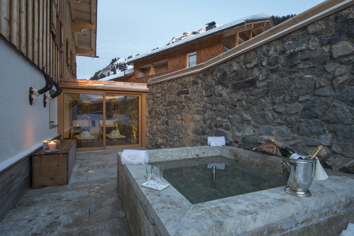 Chalet 1597 in the Stubenbach area of Lech is an outstanding five star chalet that has been refurbished from its original 1597 state into a modern, sleek, alpine retreat. This chalet sleeps 12 guests in five en-suite bedrooms split over three floors. The show stopper is the incredible main master suite located on the first floor complete with its own drawing room, emperor bed and free-standing roll-top bath.
