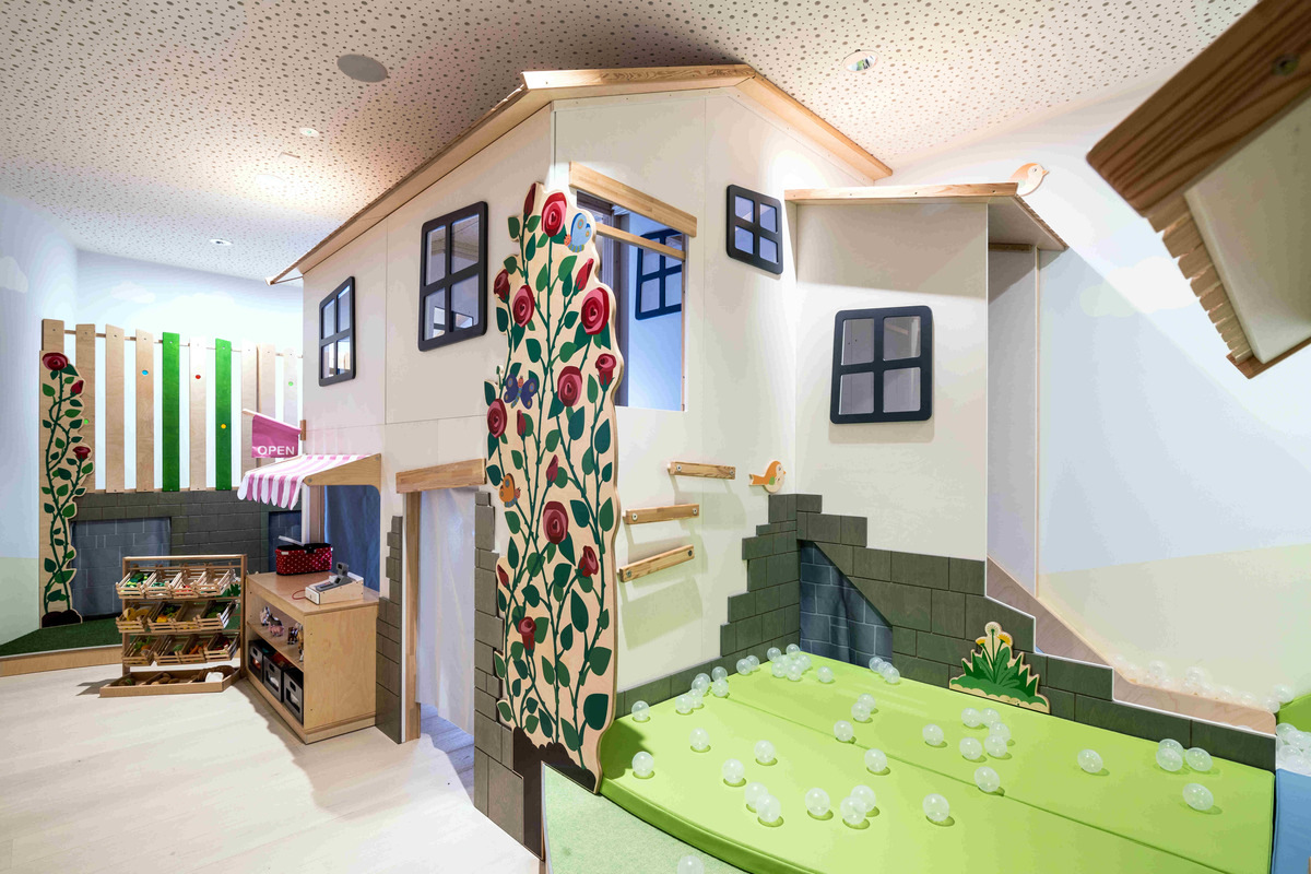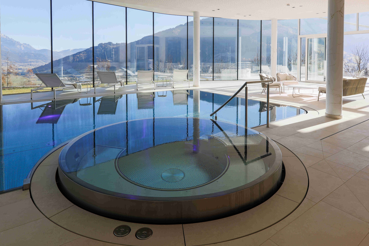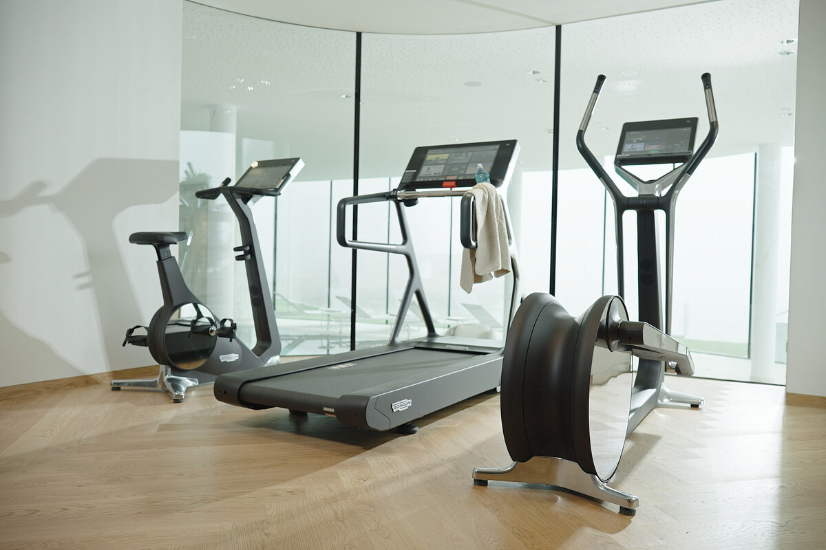 The spa would not be out of place in a 5 star hotel and comes with 14 metre swimming pool, whirlpool (for 6 guests), a play fountain for children, a gym with Technogym equipment and Life Fitness weights. There is an indoor climbing wall, two KLAFS saunas and plenty of relaxation space.