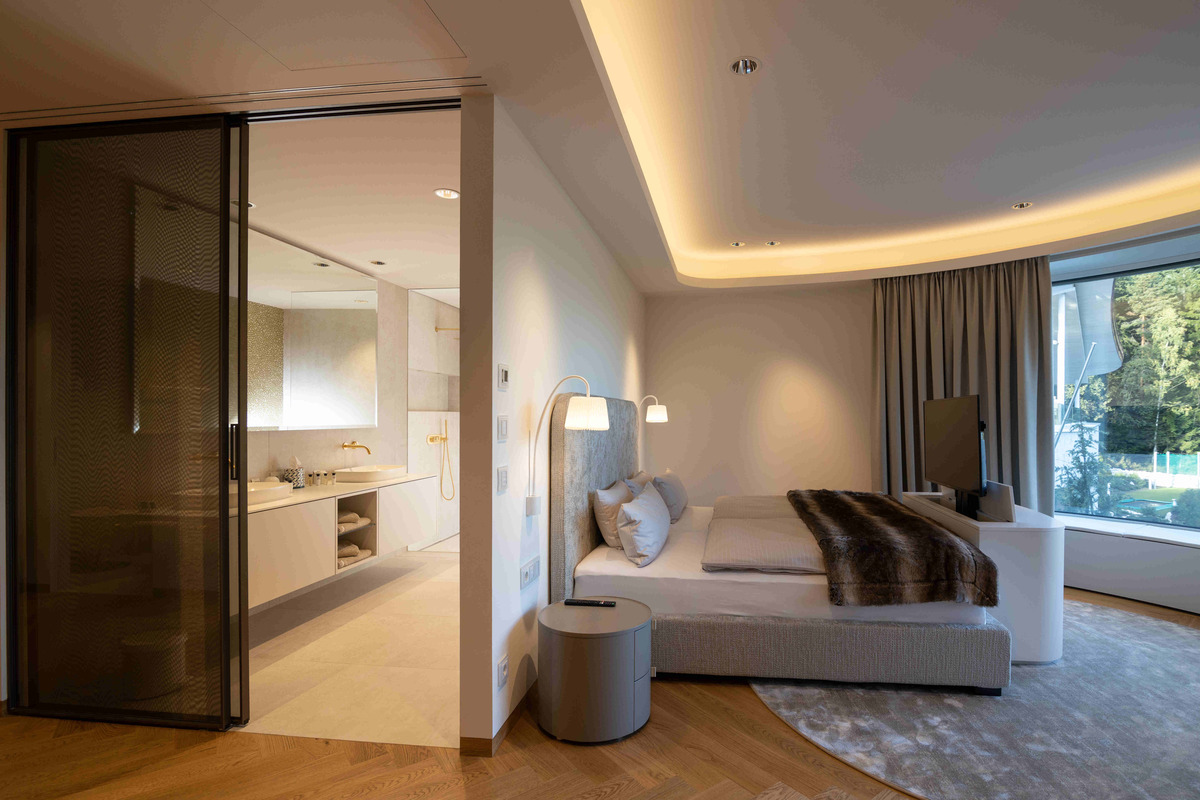 This enormous property offers a 'main house' with the spa and five bedrooms sleeping 10 guests. All the bedrooms offer recessed TV, Sonos sound, black-out curtains, sound insulated doors and box sprung beds by Wittmann.
