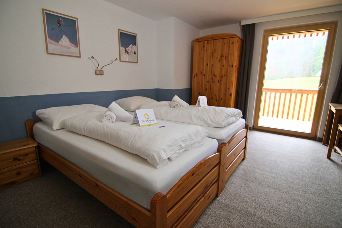 - Room 3: Austrian twin (+ extra single). En-suite shower and wc