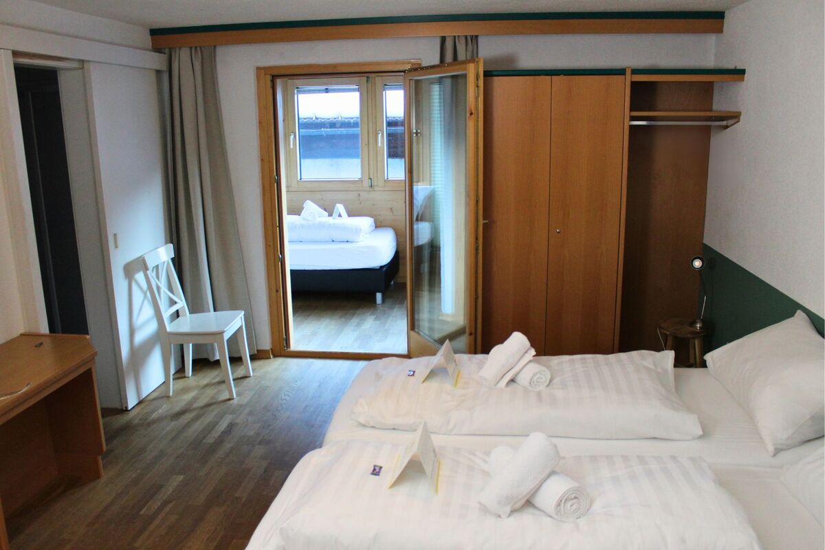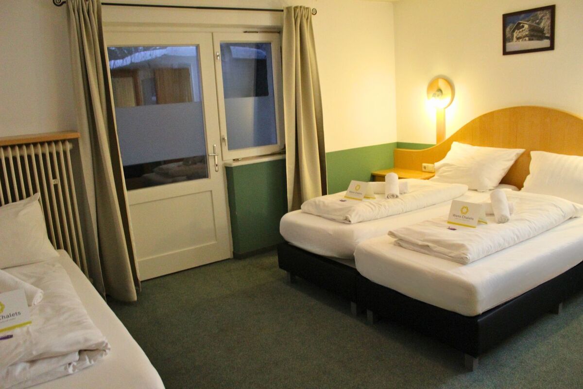 The chalet which is a former B&B pension hotel has 15 bedrooms, all with en-suite shower and wc. The rooms and shower rooms are rather plainly decorated but are functional at least. There is a large dining room and 4 members of staff to look after you during your stay. The separate bar and TV room on the first floor provide a further socialising space.