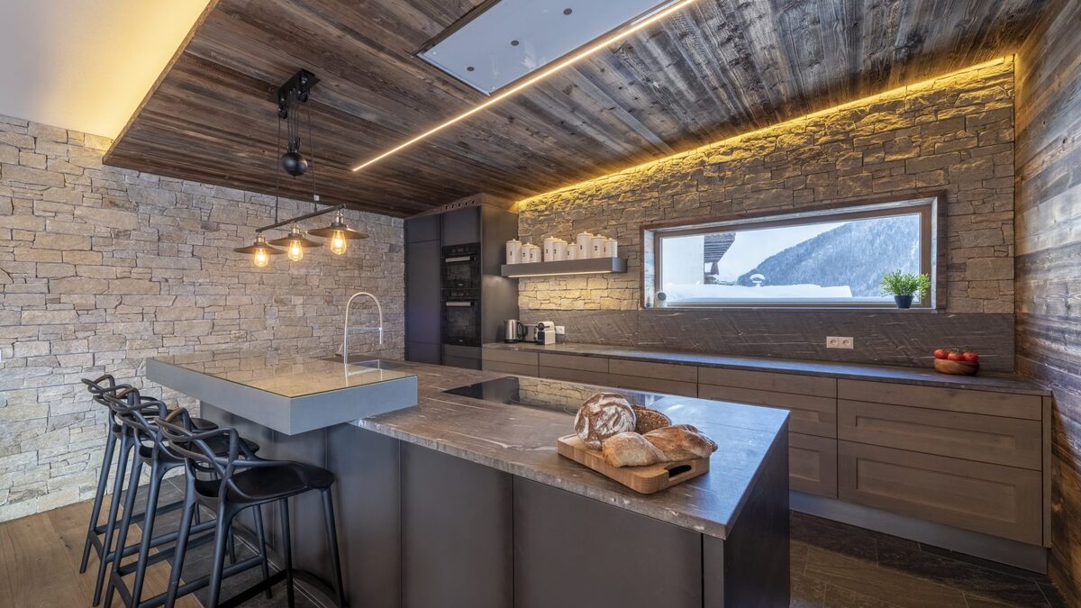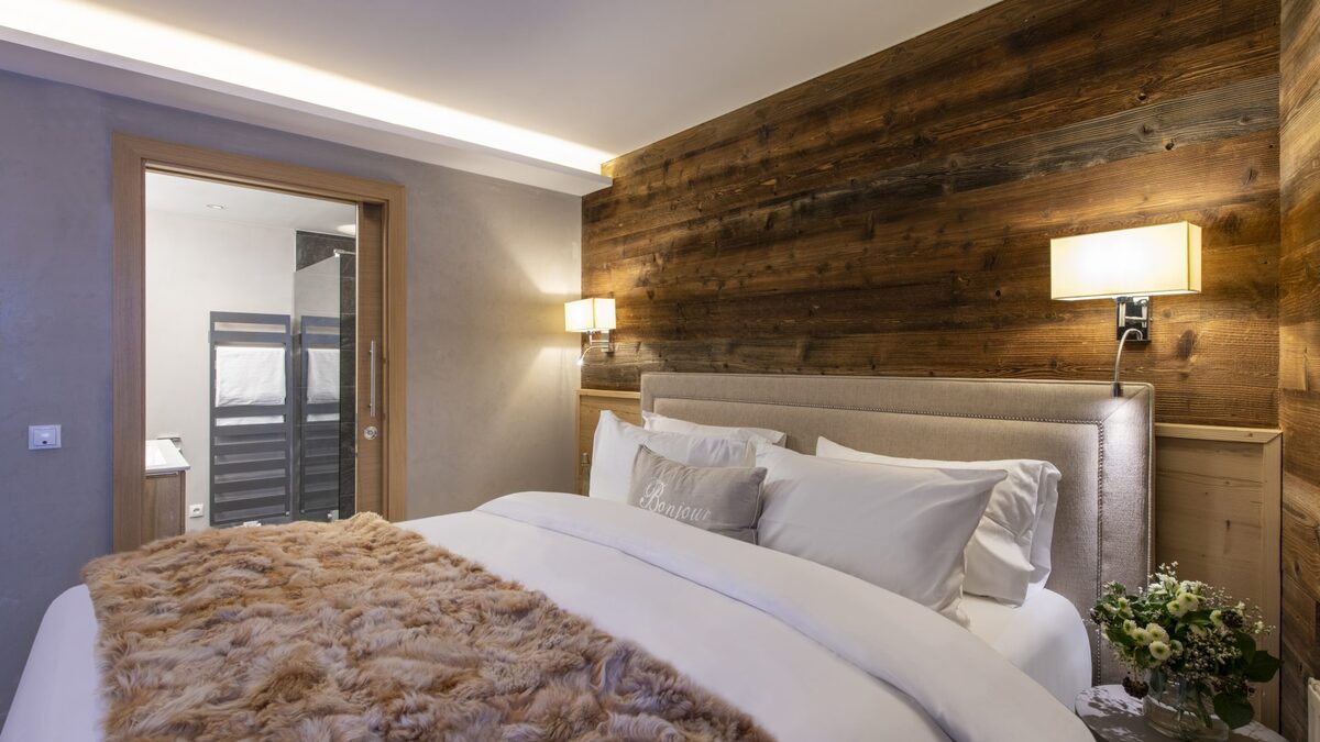 This spacious chalet accommodates up to 12 guests in a master bedroom, three twin bedrooms and a bunk bedroom that sleep four people (the bunk beds are adult sized). All rooms benefit from en-suite bathrooms, with the bunk room and master bedroom having bath tubs as well as large rain showers.