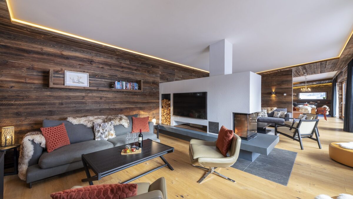 Very comfortable and stylish chalet apartment with a light filled sitting room and stunning views across to the Rendl Mountain. Wood burning fireplace and indoor sauna also add to the attraction.