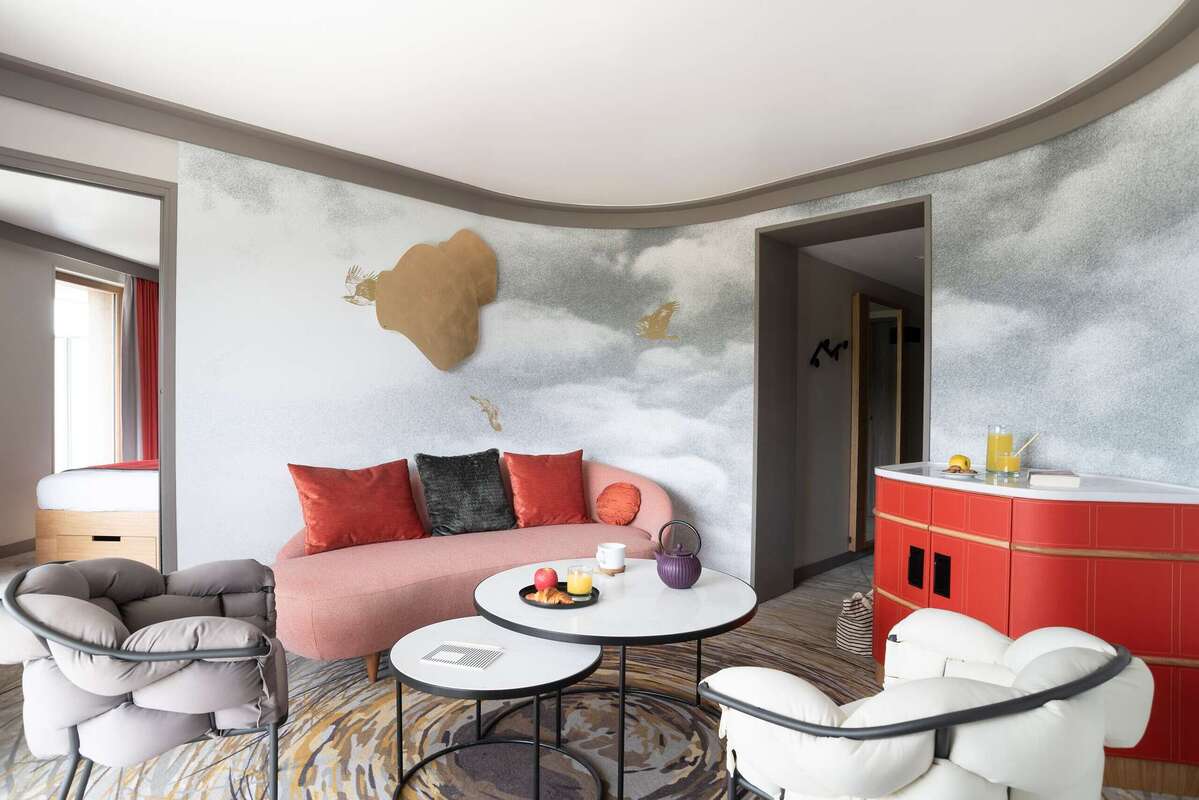 There are three different room types on offer at the Club Med Alpe d'Huez. Superior twin/double rooms (1-3 people) are 25-29sq metres in size and have en-suite bath and wc as well as a balcony. Deluxe twin/double rooms (2 people) offer the same but are a little larger at 30 square metres. There are also 8 family suites with two separate bedrooms and two bathrooms (one with bath and the other with shower). The suites (1-4 people) are 62 square metres in size and offer a private terrace with valley views.